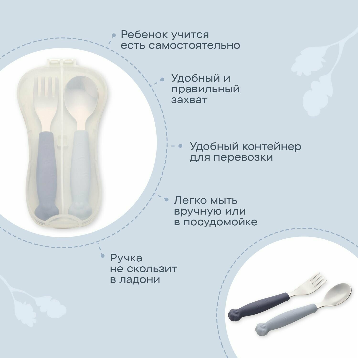 Столовые приборы YummyMia для детей, ложка и вилка для кормления развивающие моторику малышей
