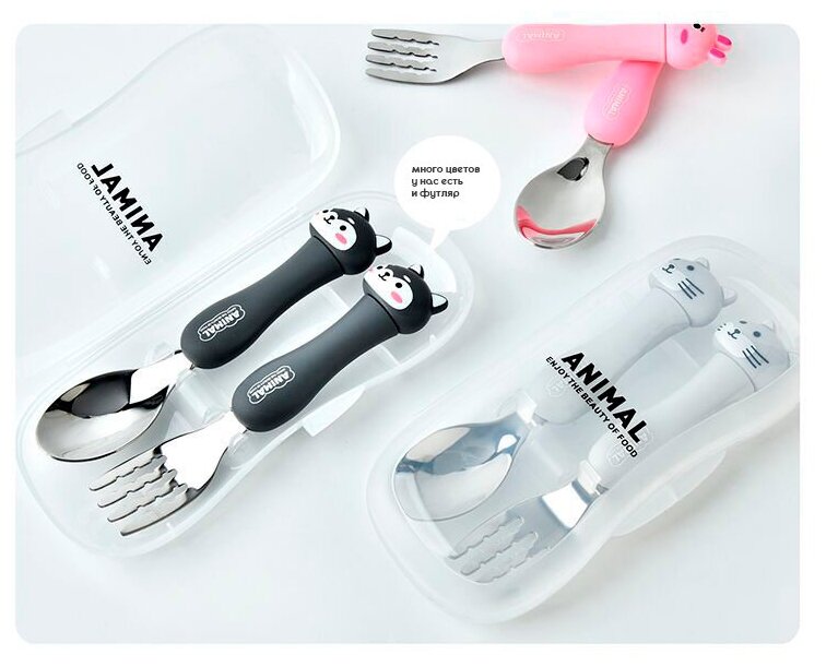 Набор для кормления IBRICO, вилка/ложка, футляр, мытье в посудомойке, нескользящие ручки