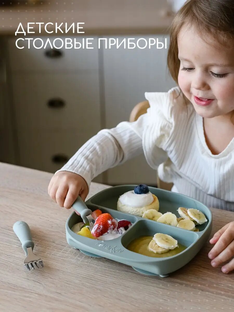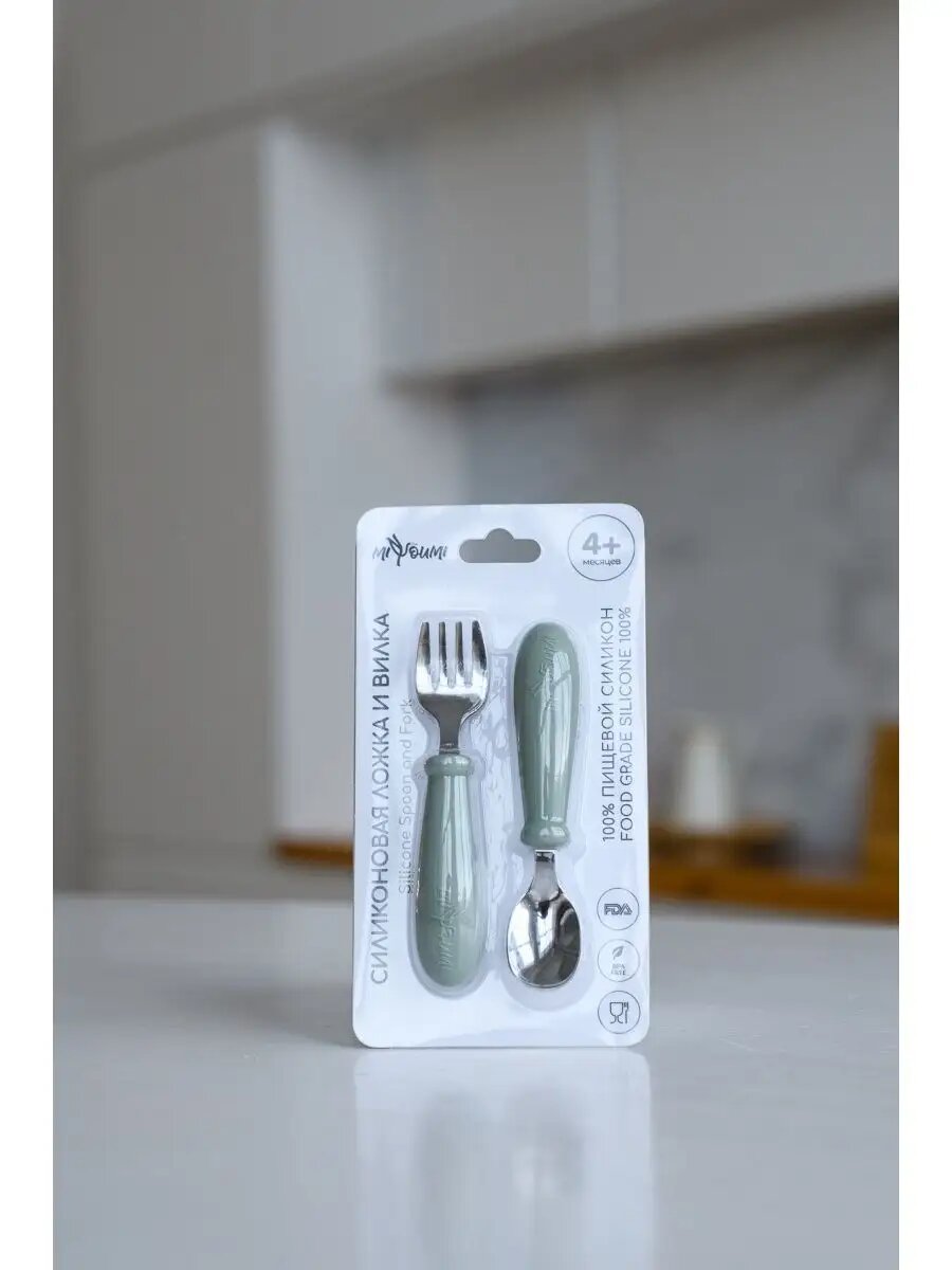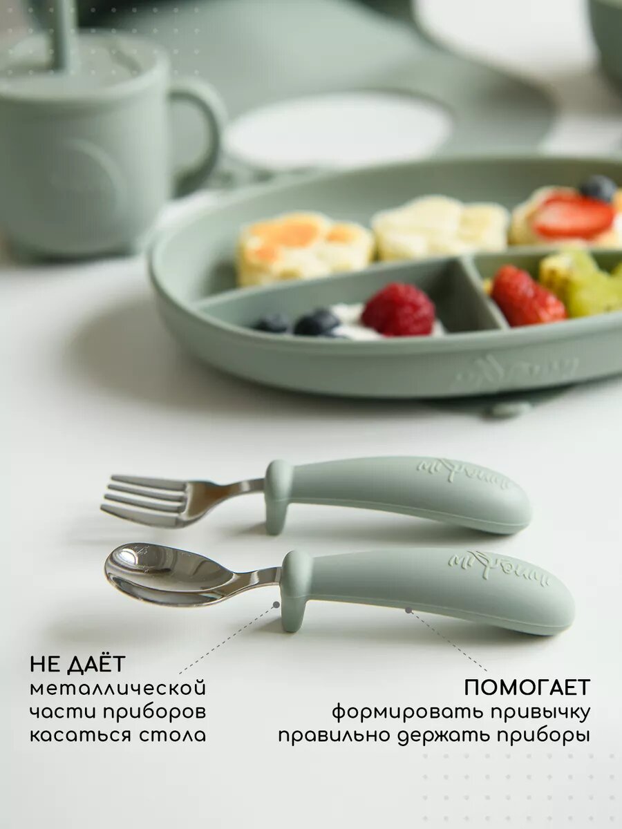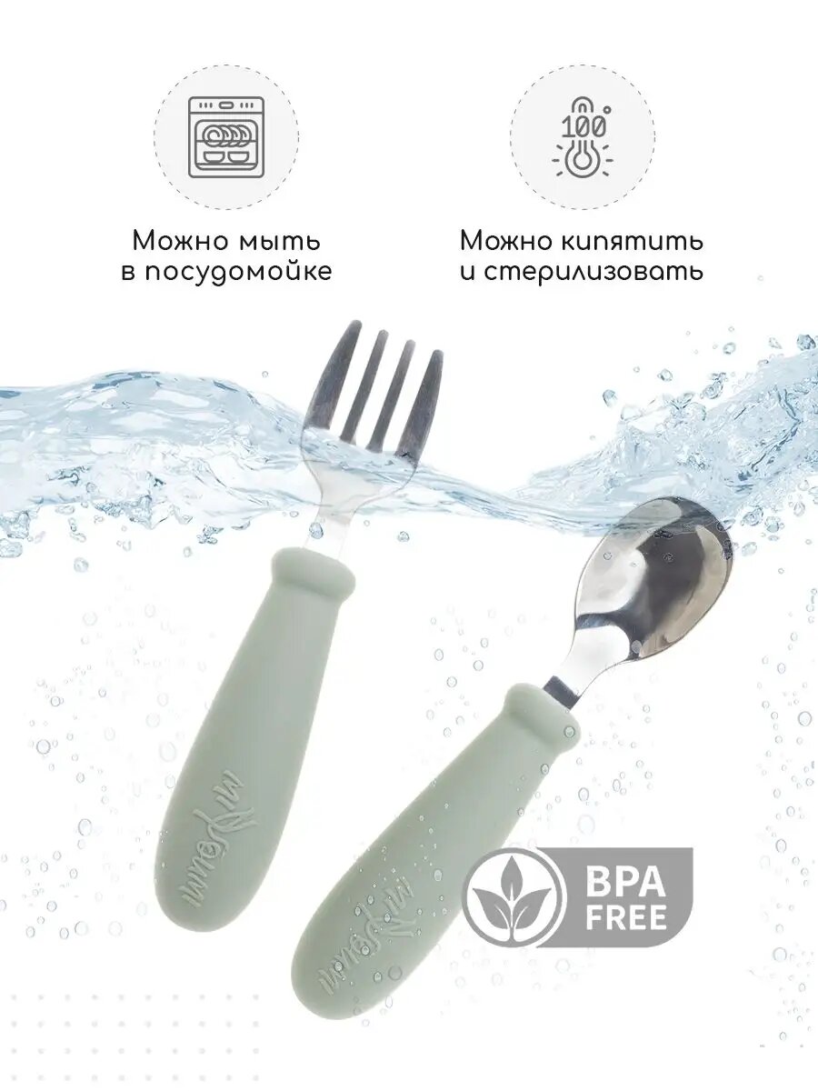 Столовые приборы YummyMia для детей, ложка и вилка для кормления развивающие моторику малышей