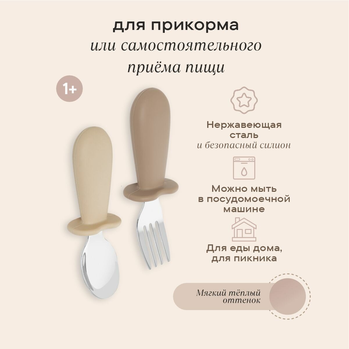 Столовые приборы YummyMia для детей, ложка и вилка для кормления развивающие моторику малышей