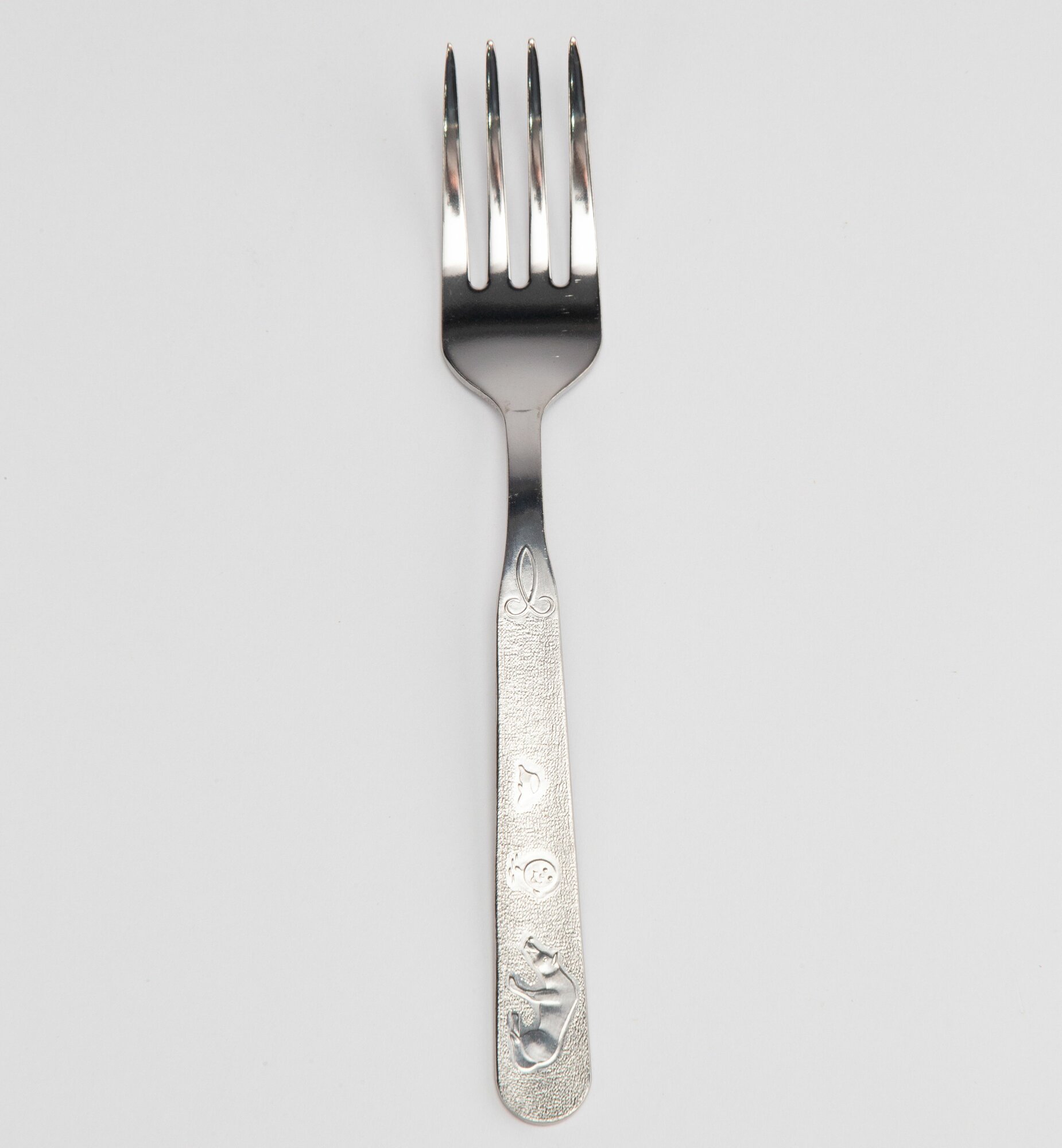 Вилка детская для кормления Кольчугинский мельхиор Маша посеребренная с эмалью