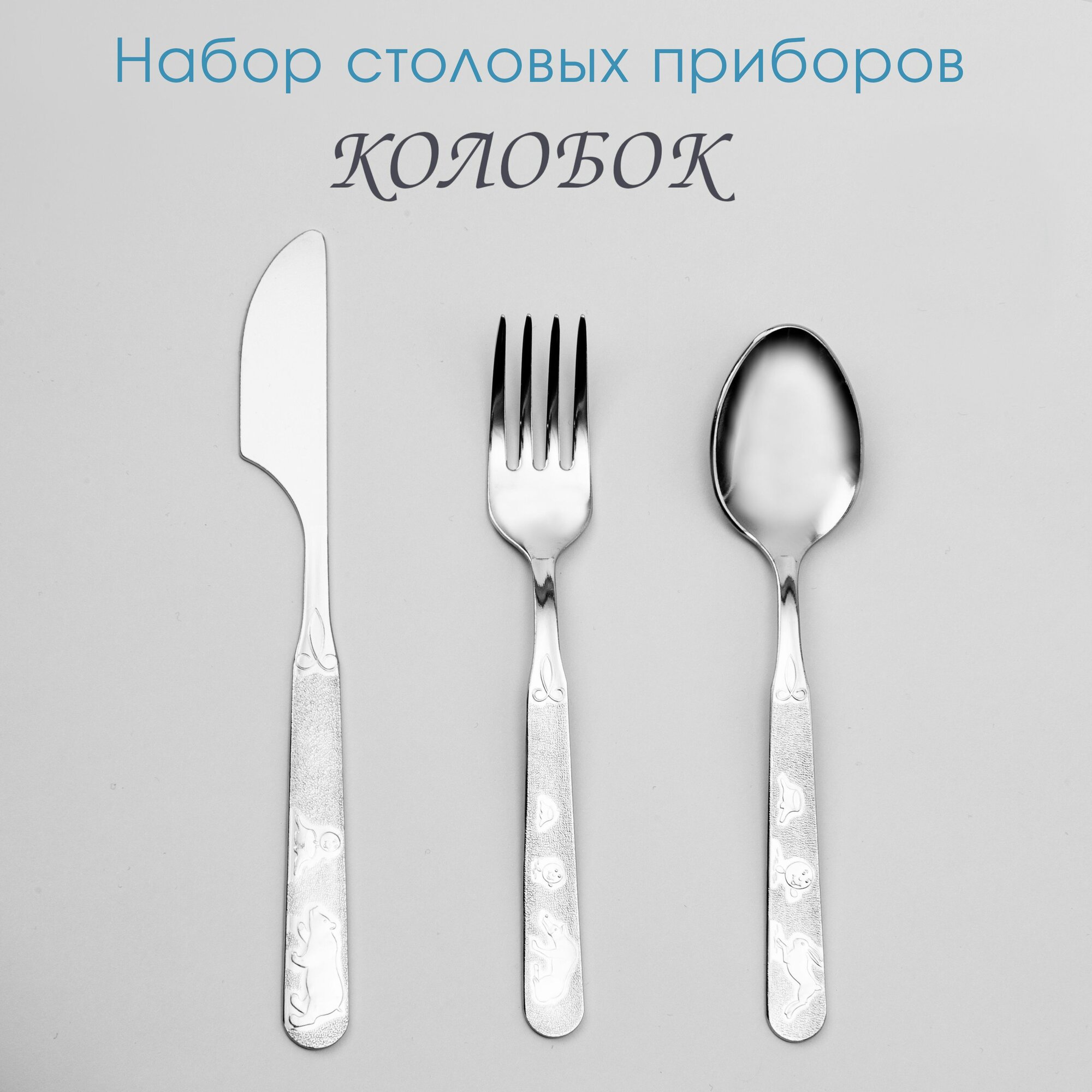 Набор столовых приборов детский серии Колобок, 3 предмета интересное: