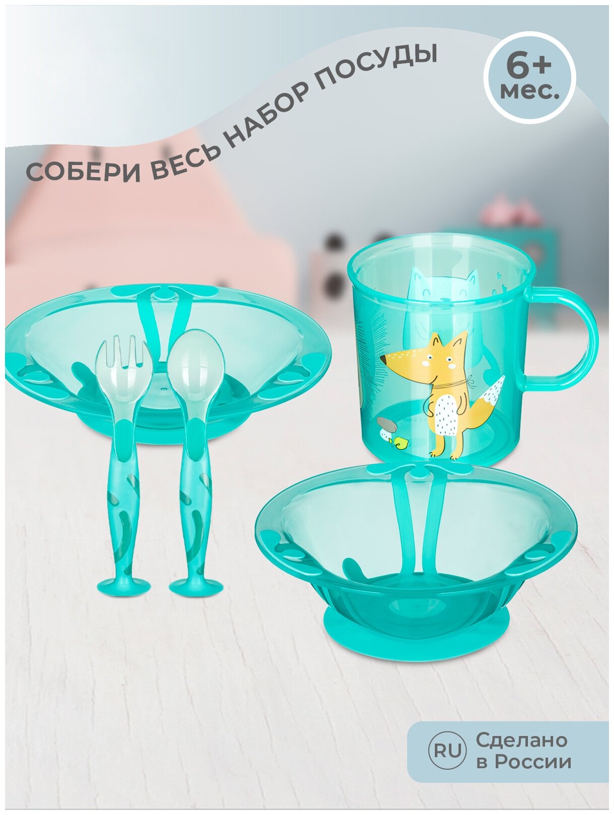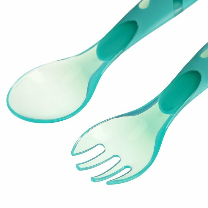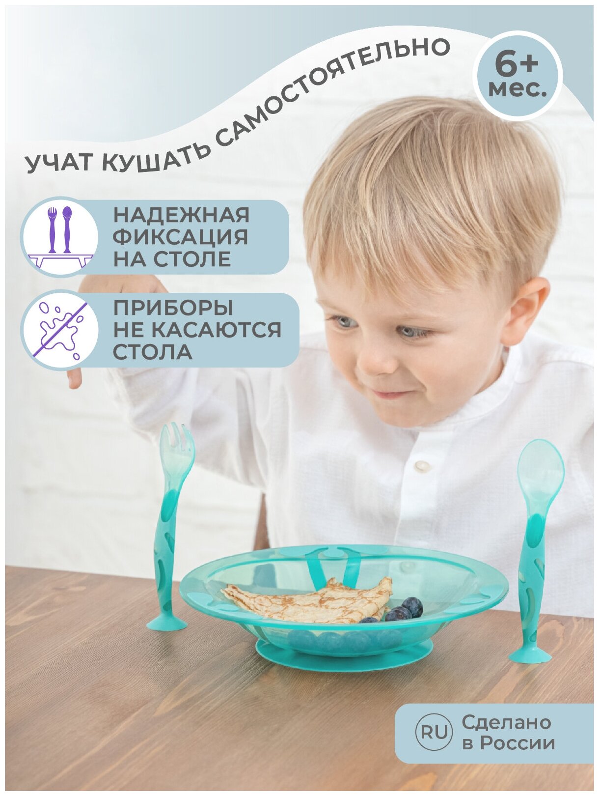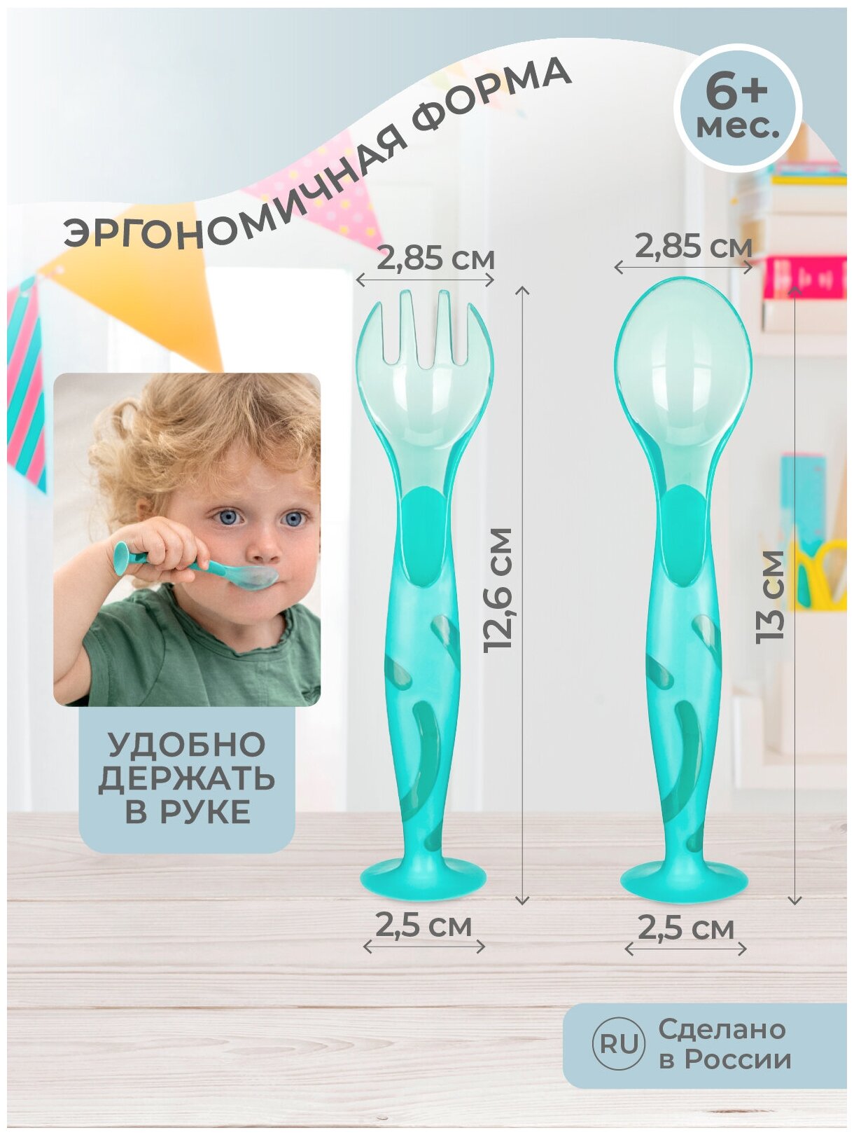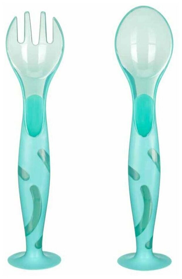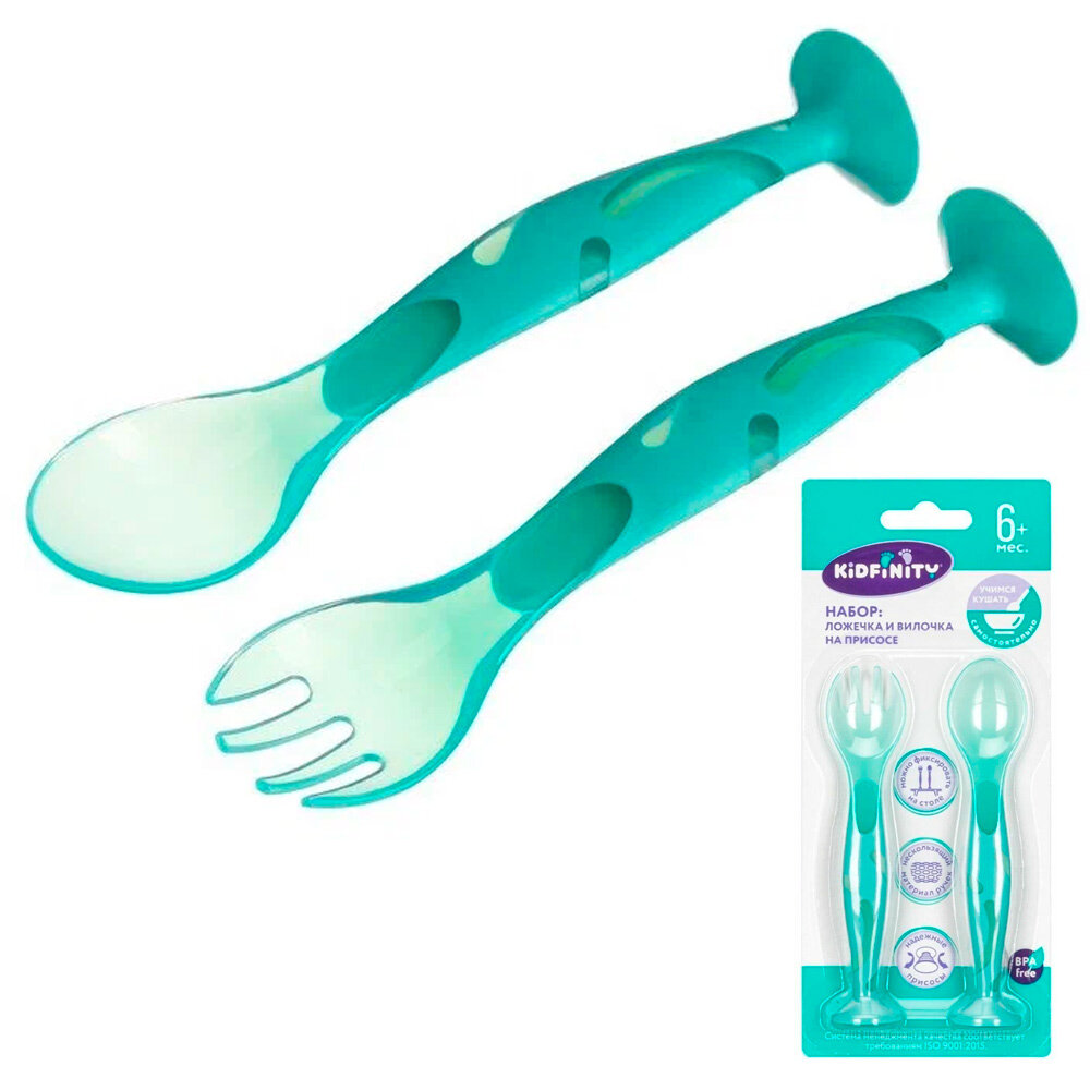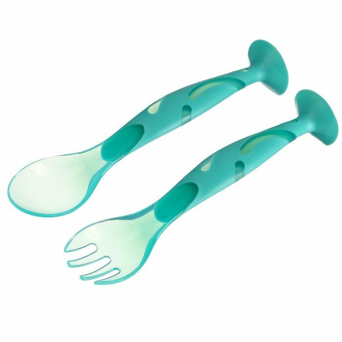 Набор: ложечка и вилочка на присосе (Зеленый) интересное: