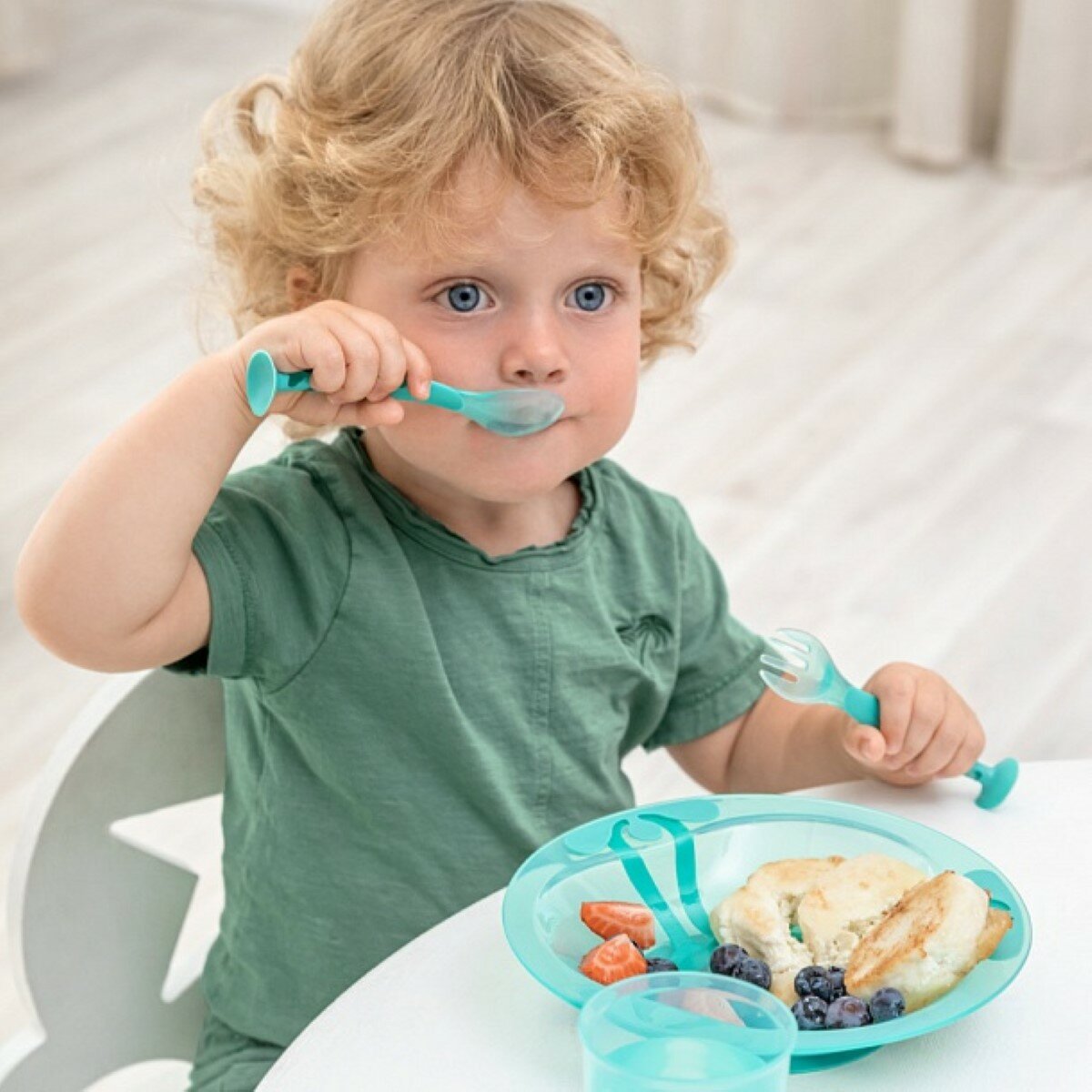 Столовые приборы YummyMia для детей, ложка и вилка для кормления развивающие моторику малышей