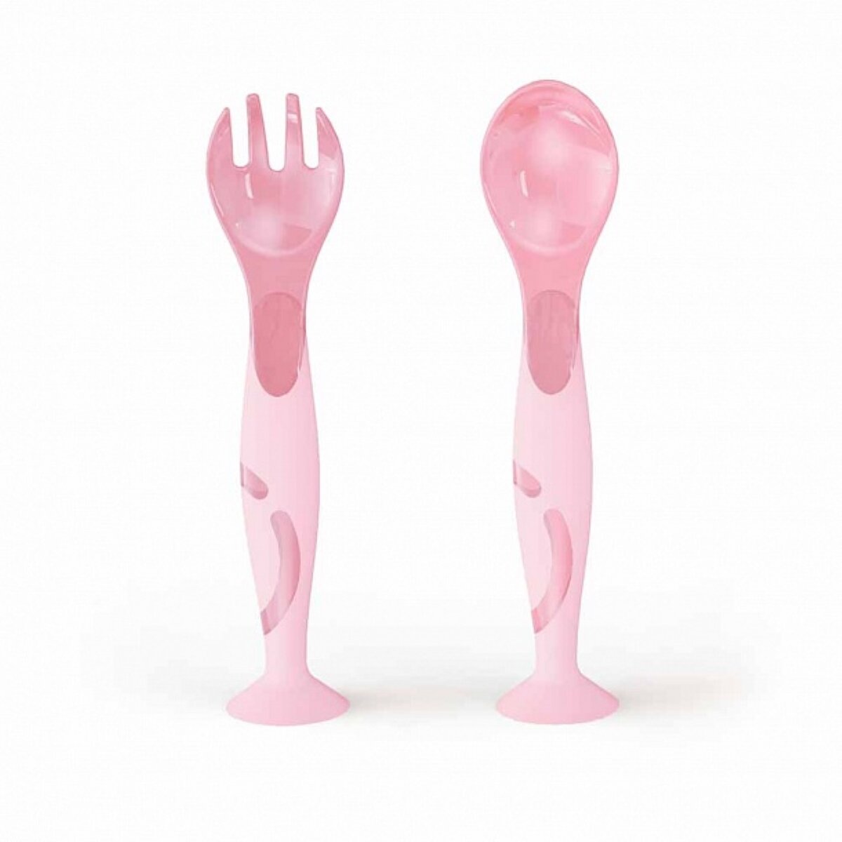 Набор: ложечка и вилочка на присосе (Розовый) интересное: