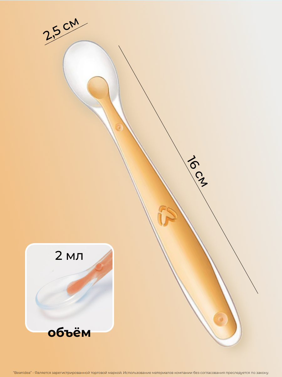 Ложка Beanidea Kids, 2 штуки, пищевой силикон, с кейсом, оранжевая, мытье в посудомойке интересное: