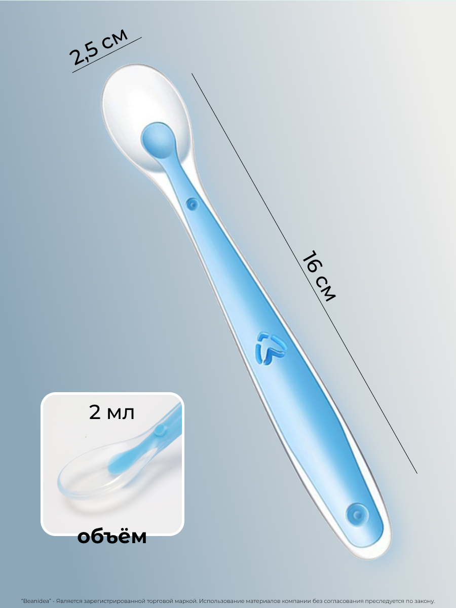 Ложка Beanidea Kids, 2 штуки, пищевой силикон, с кейсом, голубой, мытье в посудомойке интересное: