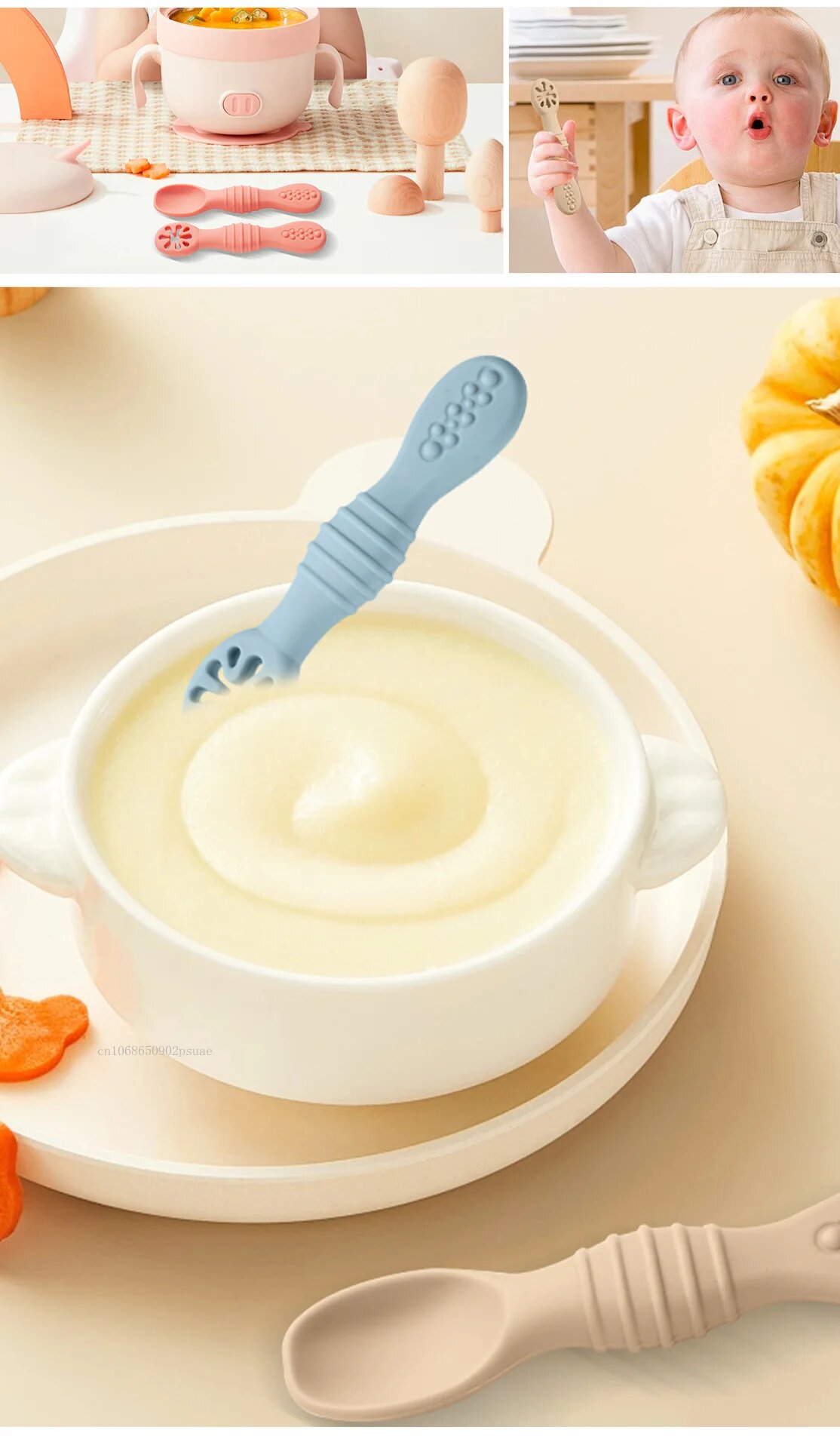 MOONBIFFY Силиконовые ложки для малышей 2 шт, Бежевый