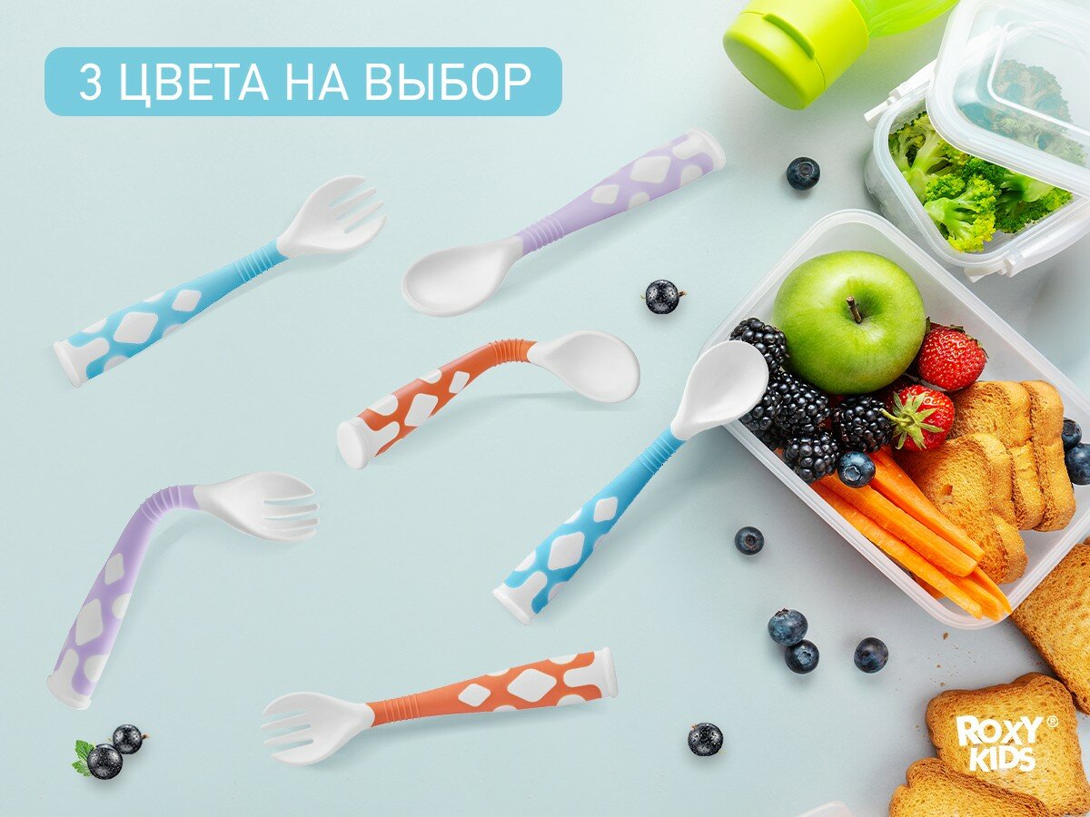 Набор гибких столовых приборов Roxy-kids 2 предмета лавандовый интересное:
