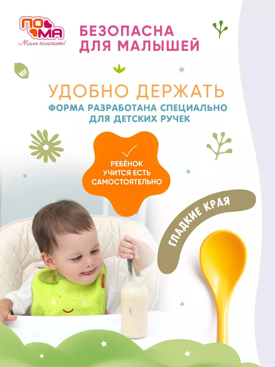 Ложка для прикорма ПОМА, для детей от 6 мес, желтая, длинная интересное:
