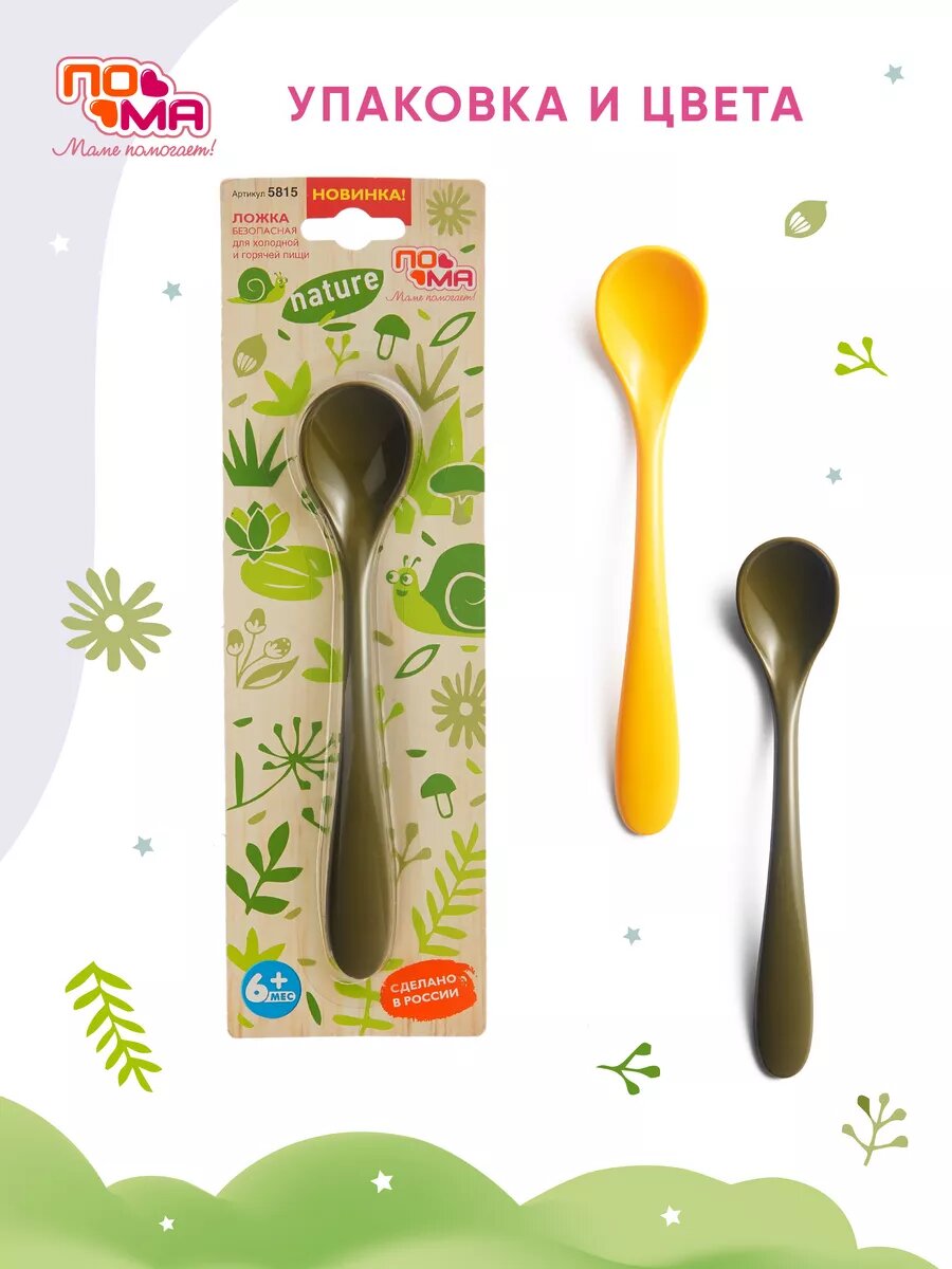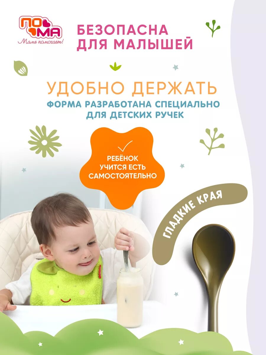Ложка для прикорма ПОМА, зеленая, для детей с 6 мес, длинная ручка, изогнутая, 1 шт. интересное: