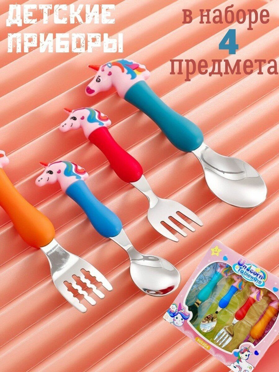 Детский набор столовых приборов для кормления и прикорма малыша, комплект 4 предмета вилка 2 шт и ложечка 2шт интересное: