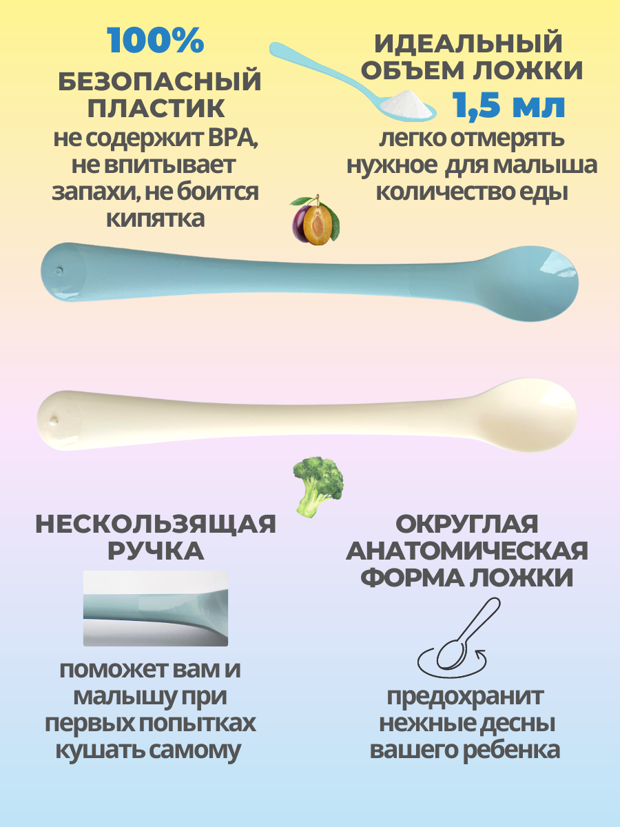 Детский набор столовых приборов для кормления и прикорма малыша, комплект 4 предмета вилка 2 шт и ложечка 2шт