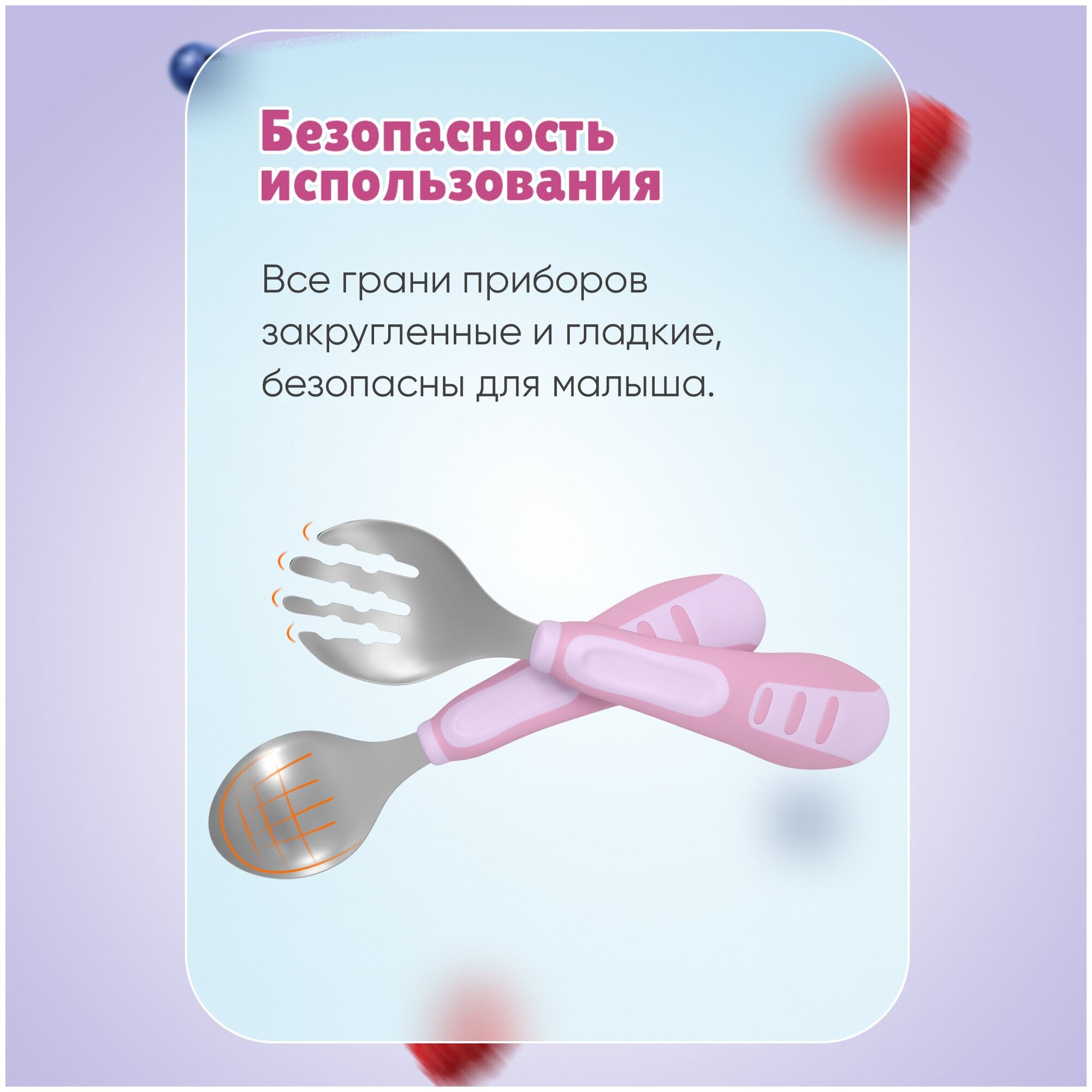 Столовые приборы YummyMia для детей, ложка и вилка для кормления развивающие моторику малышей