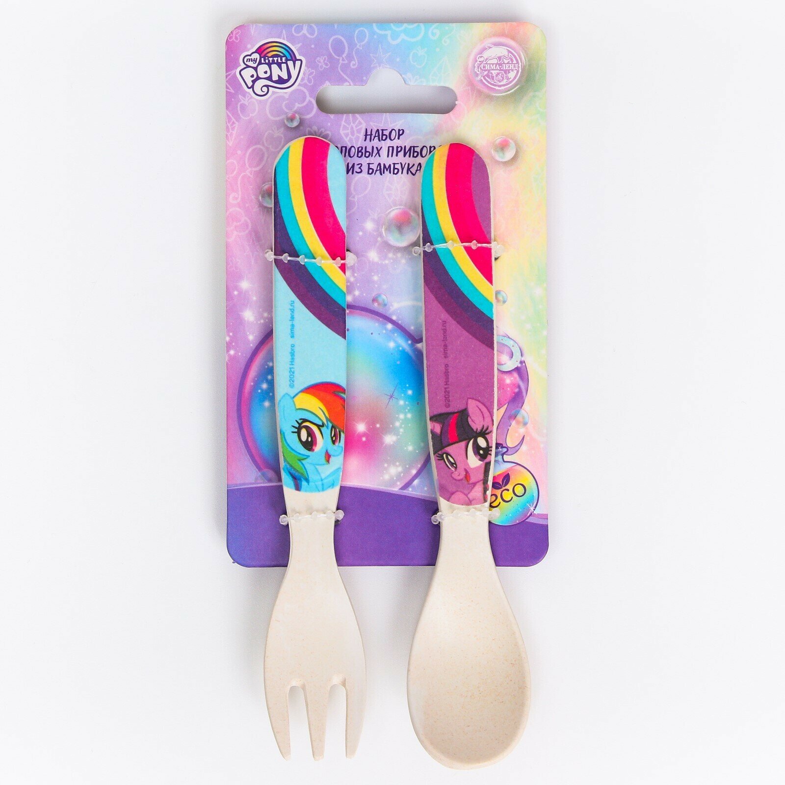 Купить Набор детских столовых приборов для кормления My Little Pony "Искорка": вилка и ложка из бамбука, разноцветные