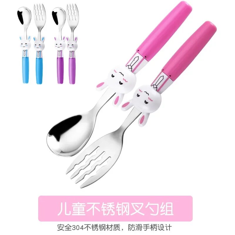 Купить Детская ложка и вилка из нержавеющей стали с Кроликом, Сиреневый