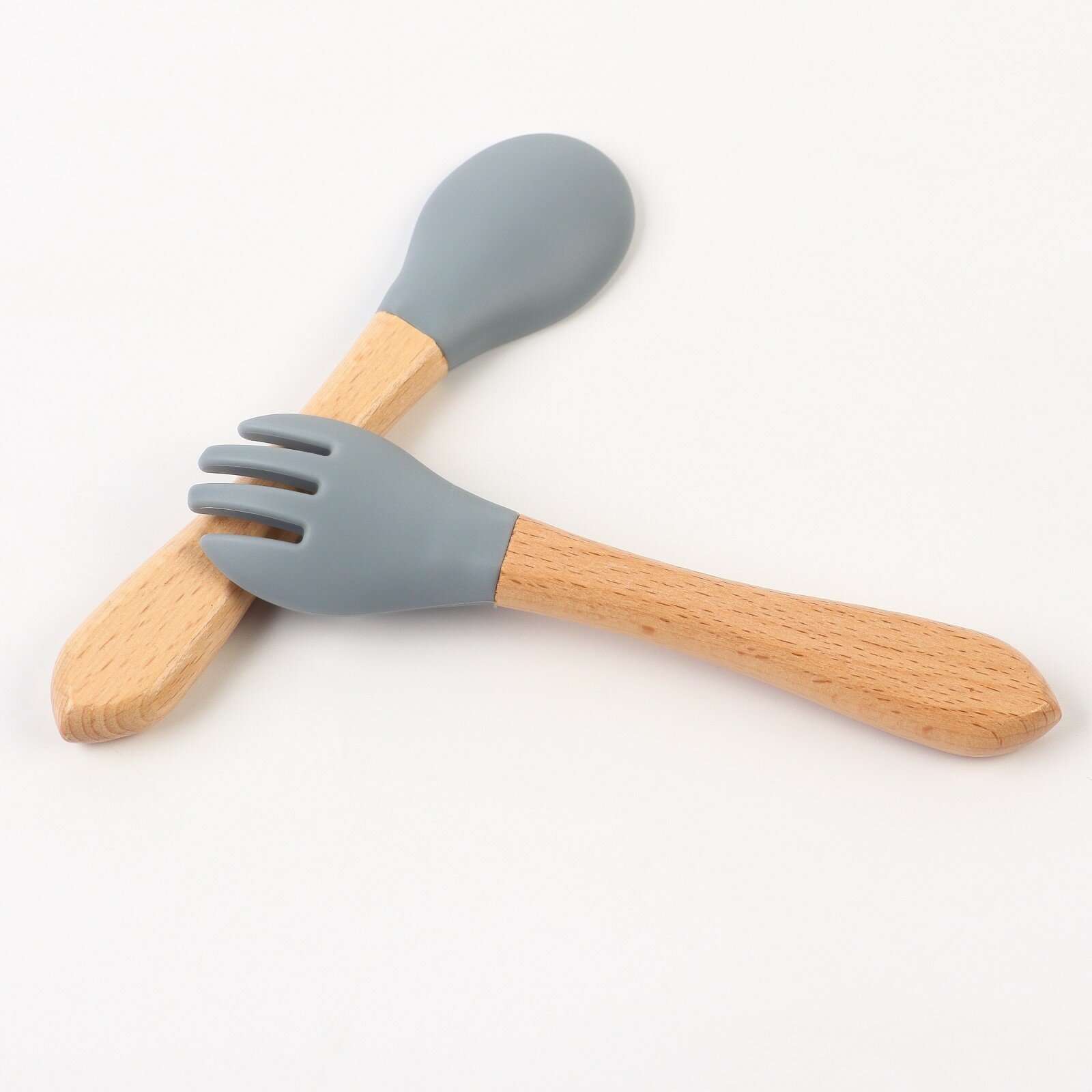 Купить Набор детских столовых приборов: вилка + ложка , от Mum&Baby (силикон, бамбук), цвет серый