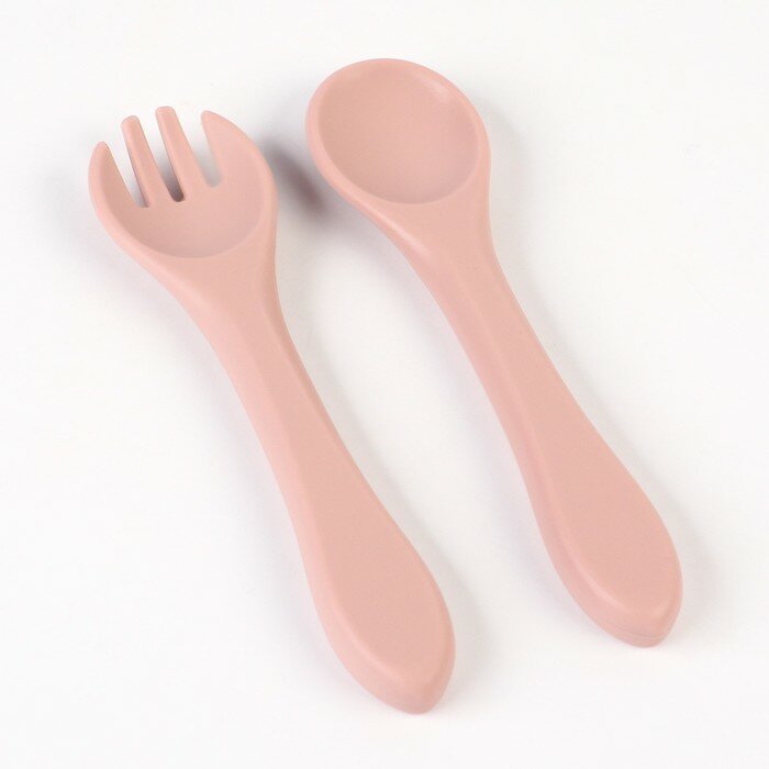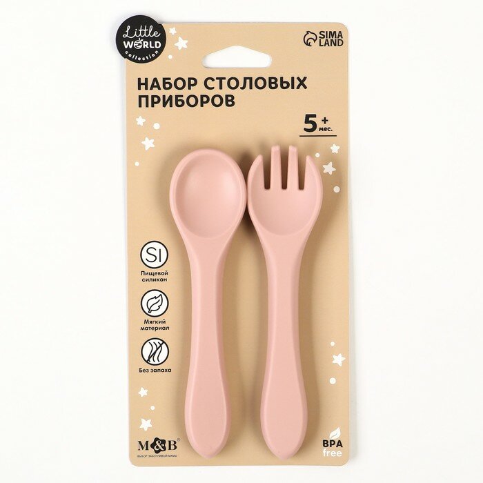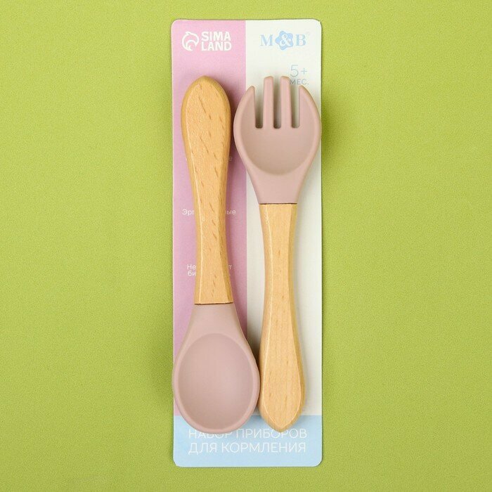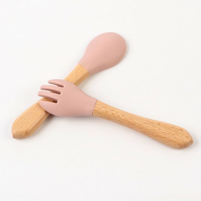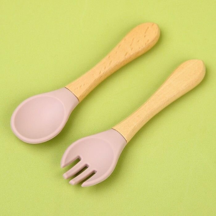 Набор детских столовых приборов: вилка + ложка , от Mum&Baby (силикон, бамбук), цвет пыльная роза интересное: