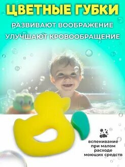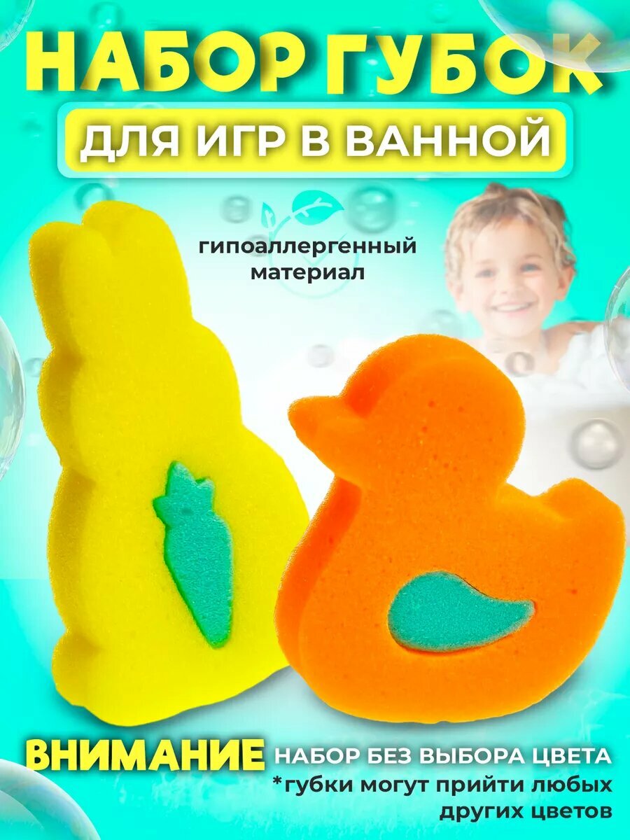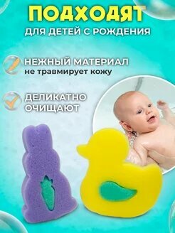 Губка, мочалка для купания набор Заяц-Утка детская интересное: