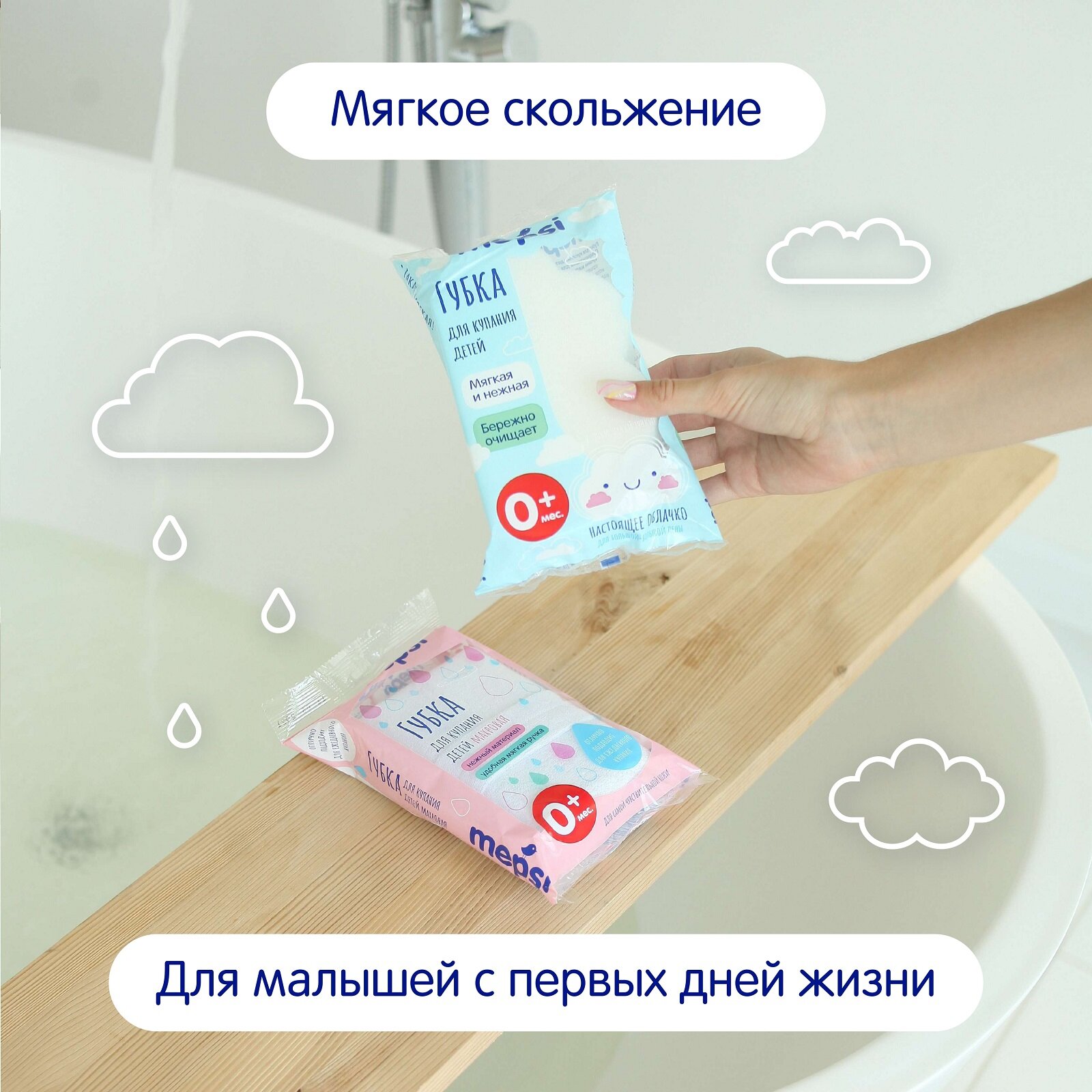 Мочалка губка детская MEPSI для тела, махровая. 0+. Мочалка для купания новорожденных. интересное: