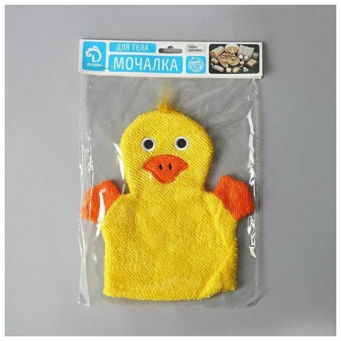 Мочалка-варежка детская для купания Доляна «Уточка», 21 см (1шт.)