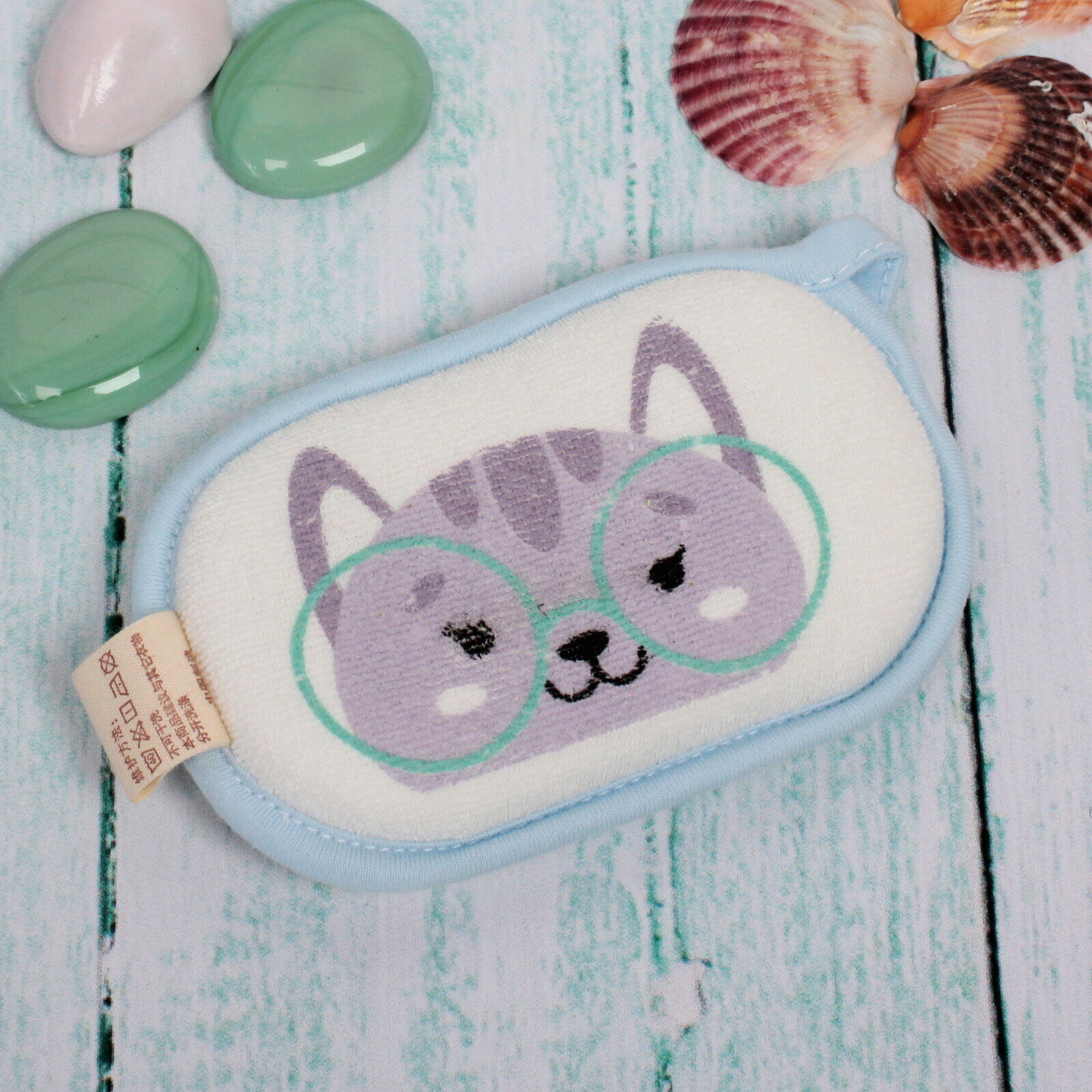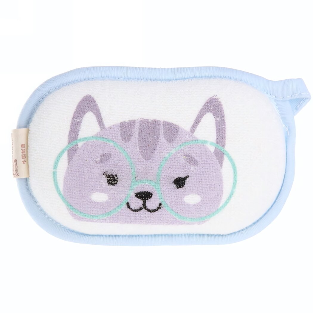 Купить Губка для тела махровая детская «Happy baby - Котёнок Оливер» , 13*8,5 см (зип пакет и наклейка Ultramarine)✦