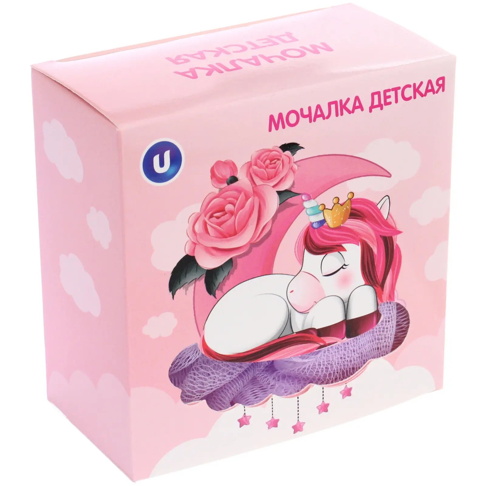 Купить Мочалка детская полипропиленовая в красочной коробке «KARAPPPUZ House», цвет лавандовый, d - 10см,30гр