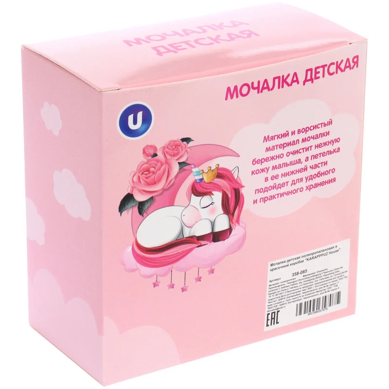 Мочалка детская полипропиленовая в красочной коробке «KARAPPPUZ House», цвет лавандовый, d - 10см,30гр интересное: