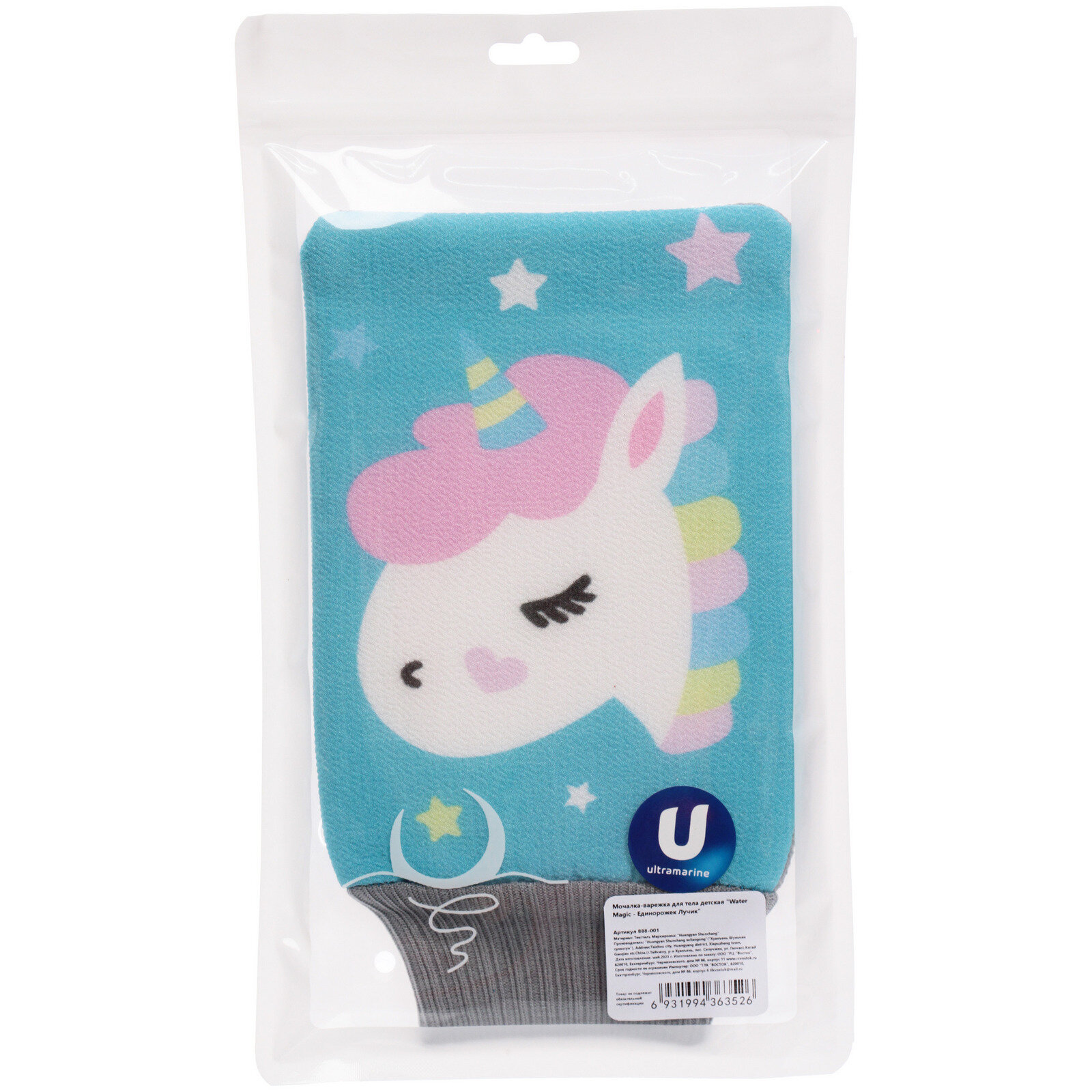 Мочалка-варежка для тела детская «Water Magic - Единорожек Лучик», цвет голубой, 24,5*14 см (ZIP пакет) интересное: