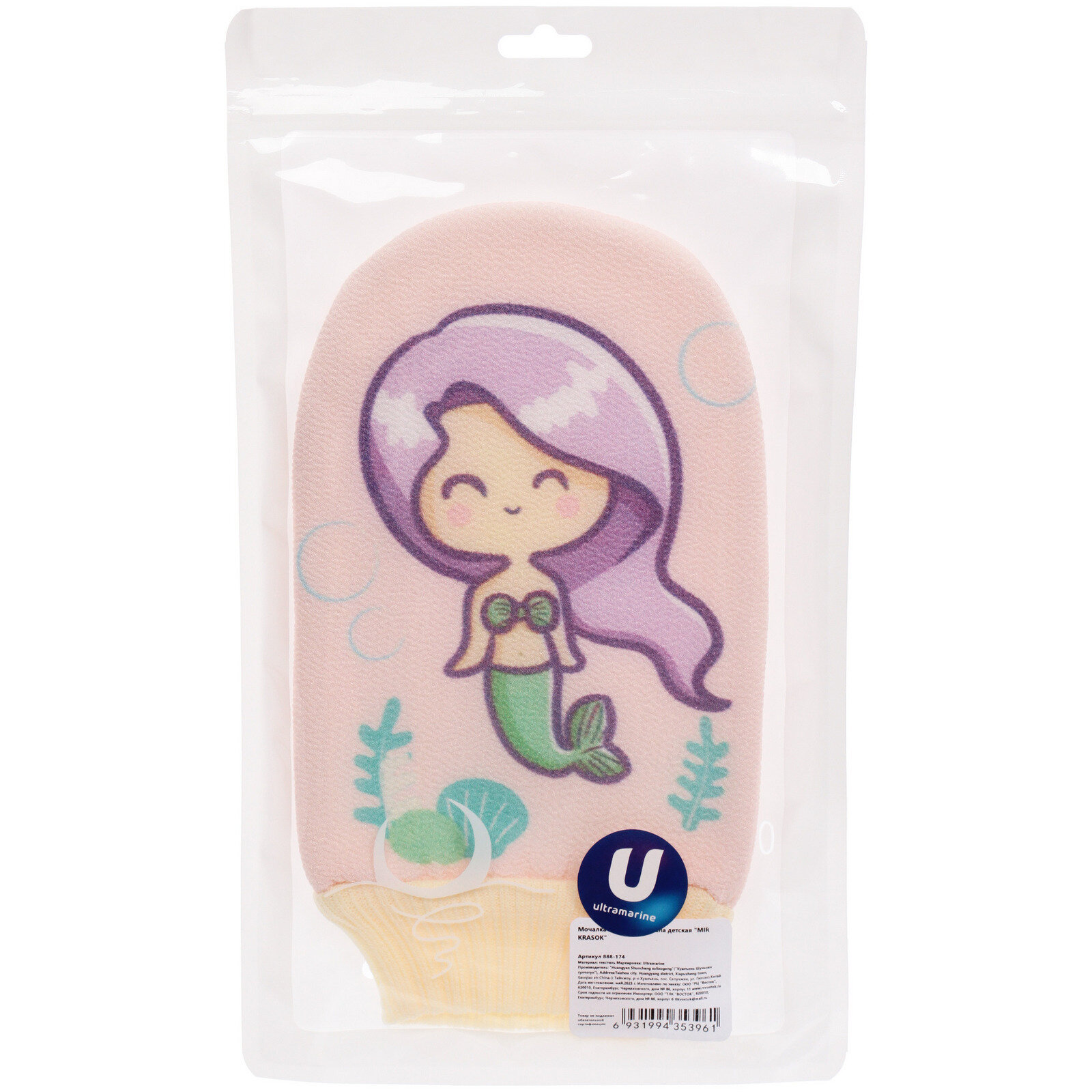 Мочалка-варежка для тела детская «MIR KRASOK», русалочка Глория, цвет как на фото, 23*15см, (ZIP пакет) интересное: