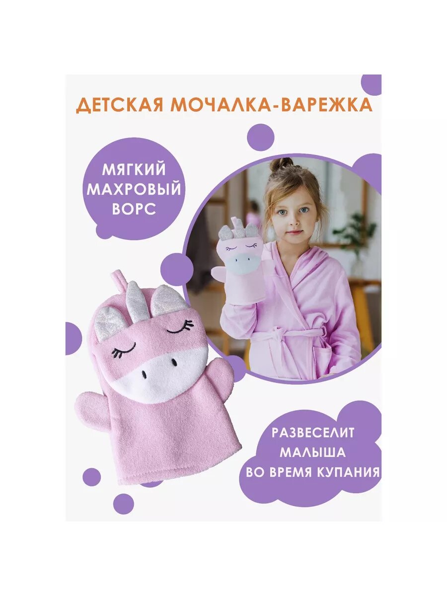 Мочалка-варежка детская "Единорожка", 1 шт. интересное: