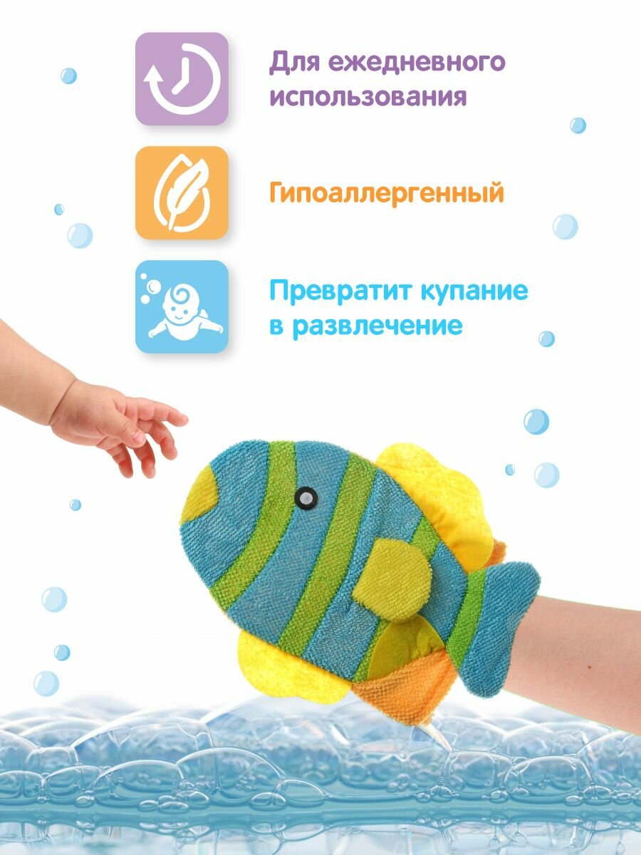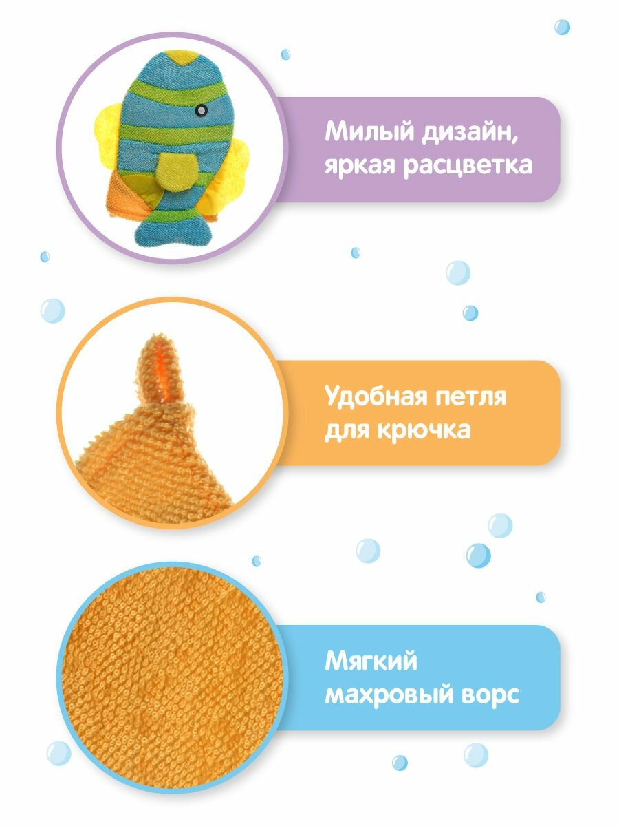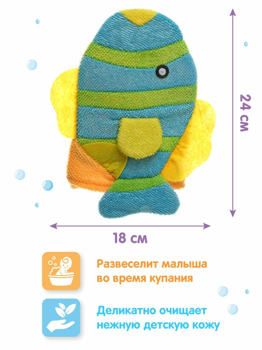 Детская мочалка-рукавичка "Рыбка" для купания детей 20х25 см. Ути Пути / Губка варежка для тела интересное: