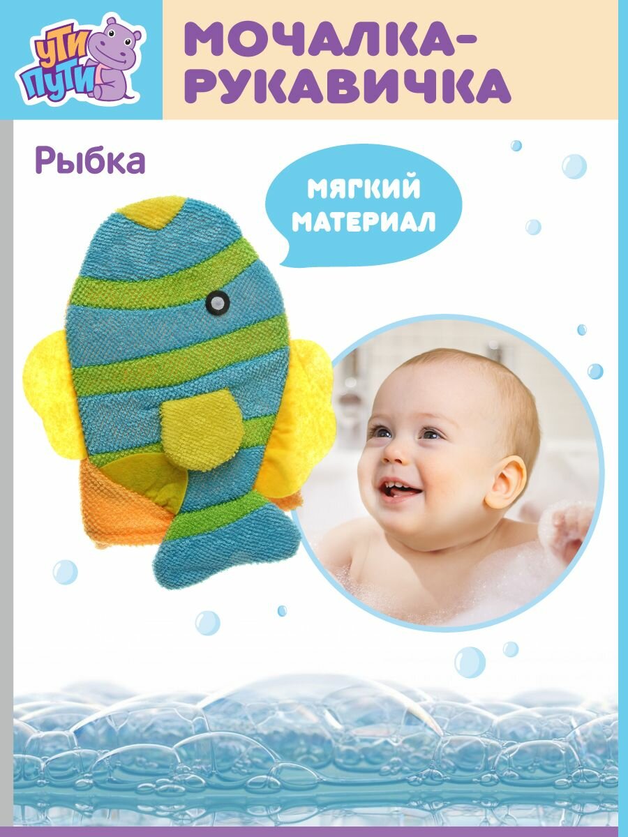 Купить Детская мочалка-рукавичка "Рыбка" для купания детей 20х25 см. Ути Пути / Губка варежка для тела