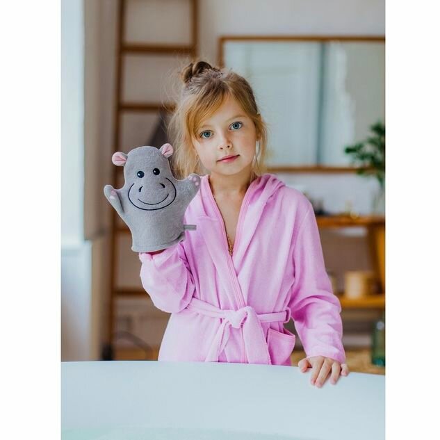 Мочалка варежка детская Бегемотик, для купания, 21 см интересное: