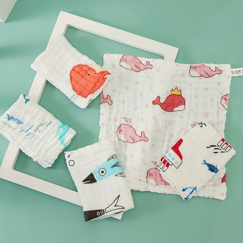 Купить Набор детских муслиновых полотенец-салфеток из хлопка, 5 шт. (W1197-2, разные цвета)