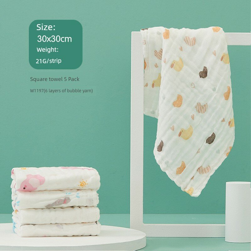 Купить Набор детских муслиновых полотенец-салфеток из хлопка, 5 шт. (W1197-4, разные цвета)