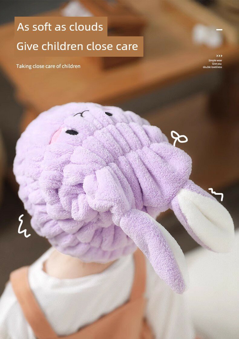 Детская шапочка для сушки волос "Нежное Сердечко" (розовый) + "Звездный Фиолетовый", 2 шт.