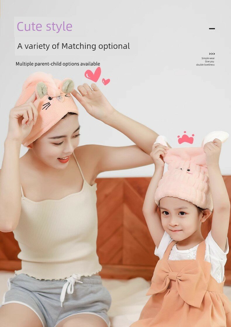 Детская шапочка для сушки волос "Нежное Сердечко" (розовый) + "Слоновая Кость" (белый), 2 шт.