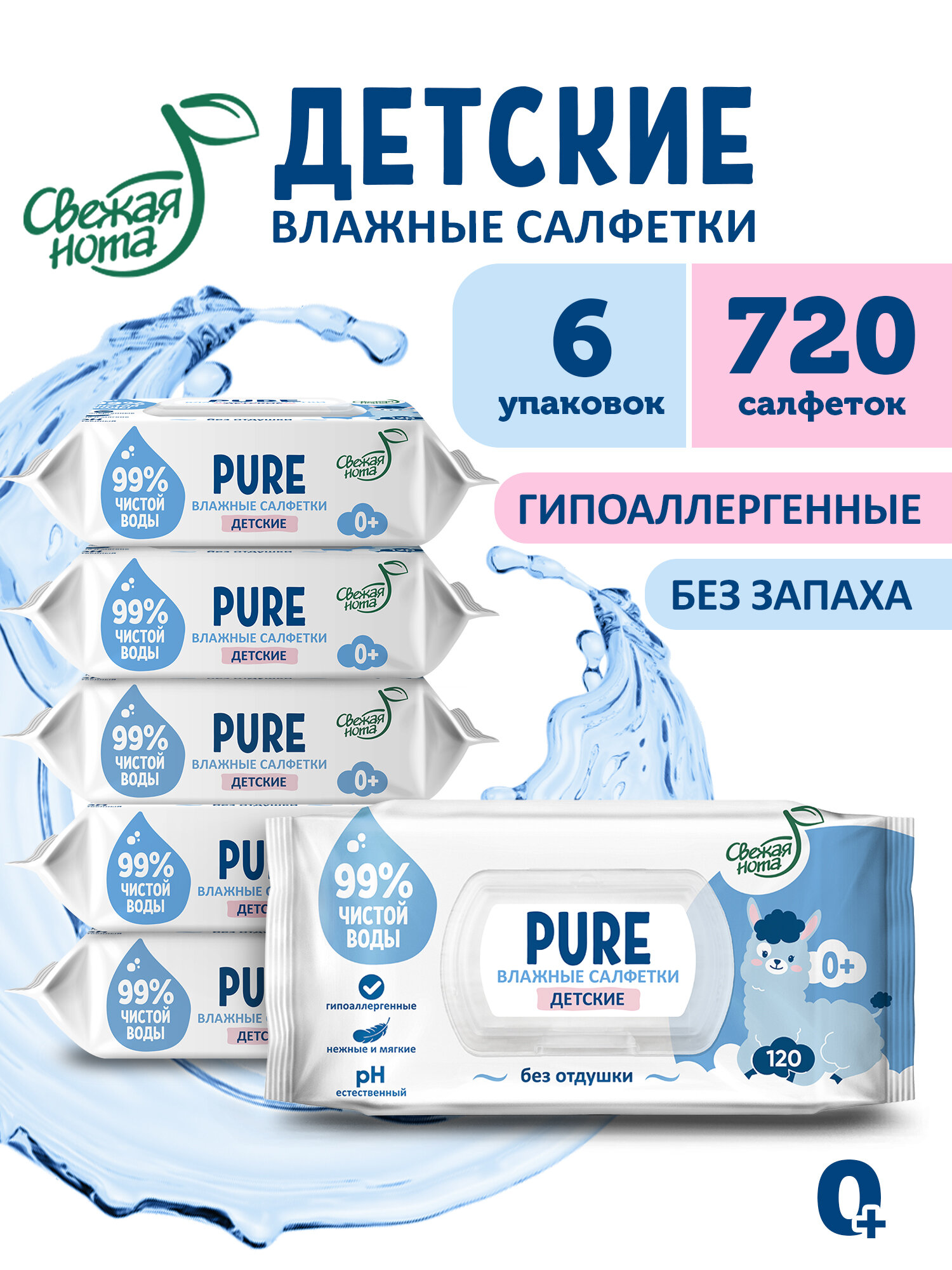 Свежая нота Влажные салфетки детские PURE (пьюр) без запаха, 720 шт. (120х6) интересное:
