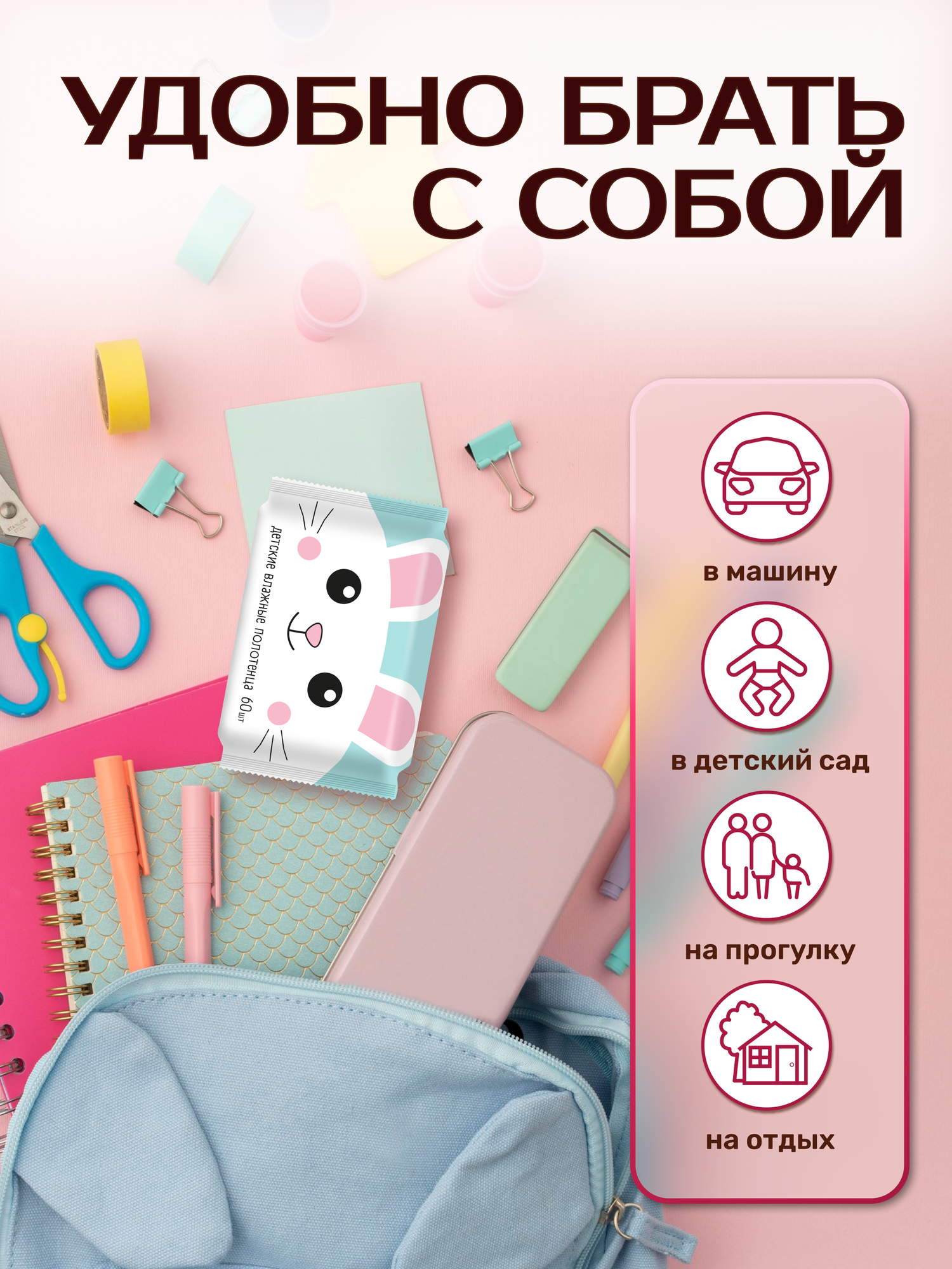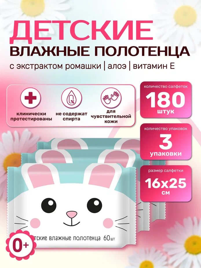 Влажные полотенца детские универсальные с ромашкой, алоэ и витамином Е,3 упаковки 180 штук интересное: