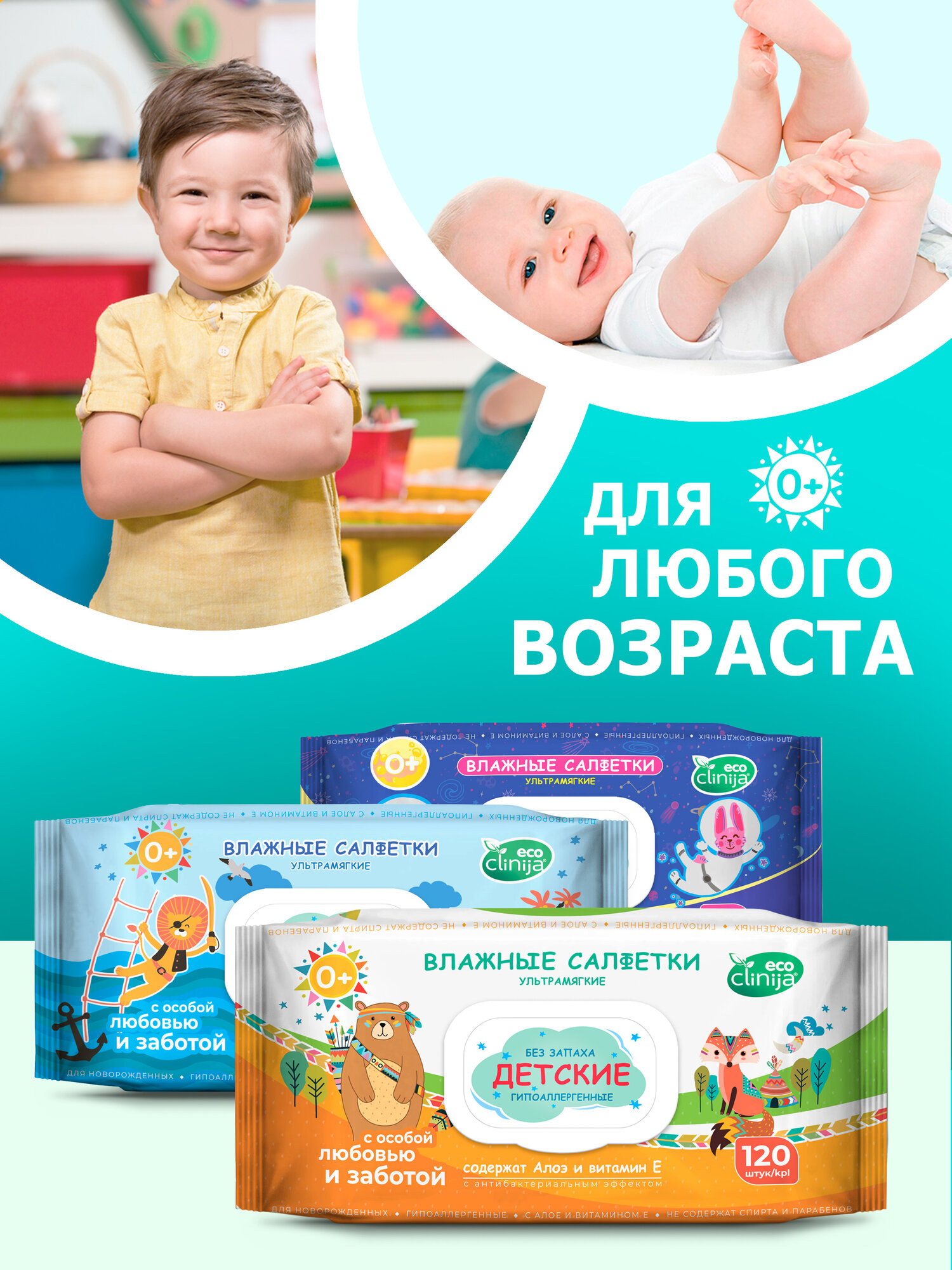 Влажные салфетки детские гипоаллергенные Витамин Е, 6 упаковок по 120 шт интересное: