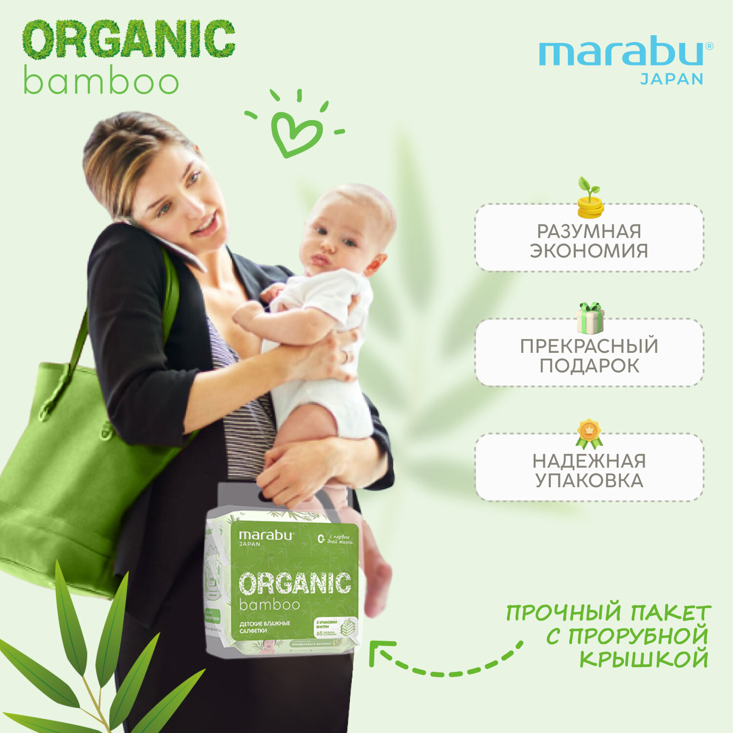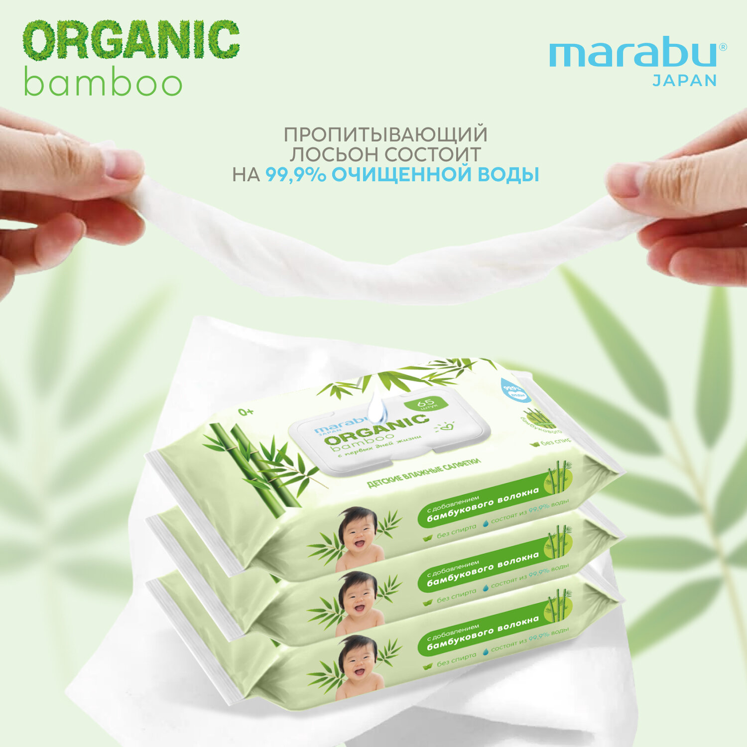 Детские влажные салфетки Marabu/МАРАБУ "Organic Bamboo", гипоаллергенные, без спирта и отдушки, 3*65 шт интересное: