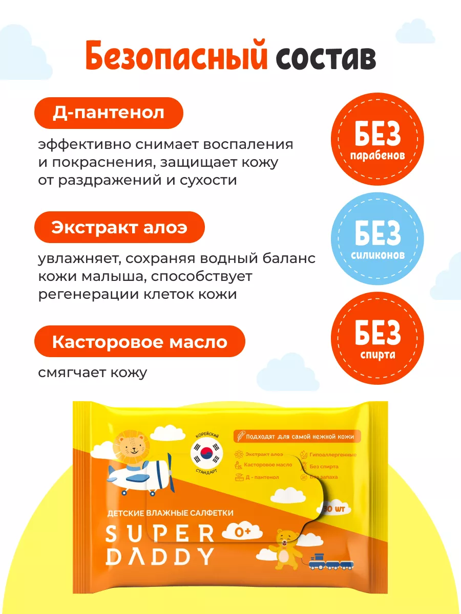 Купить Салфетки влажные детские Super Daddy, с Д-Пантенолом и экстрактом алоэ, гипоаллергенные 480 штук