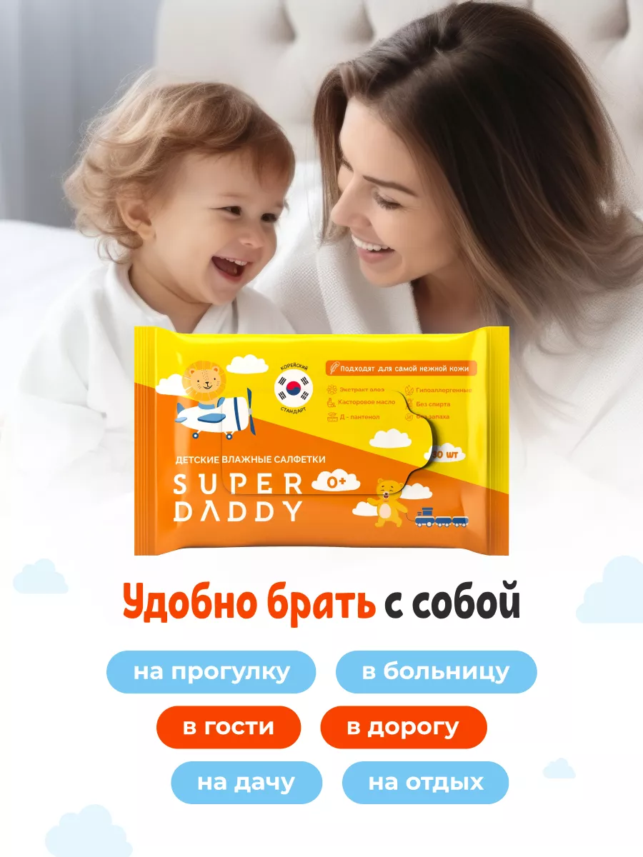 Салфетки влажные детские Super Daddy, с Д-Пантенолом и экстрактом алоэ, гипоаллергенные 480 штук