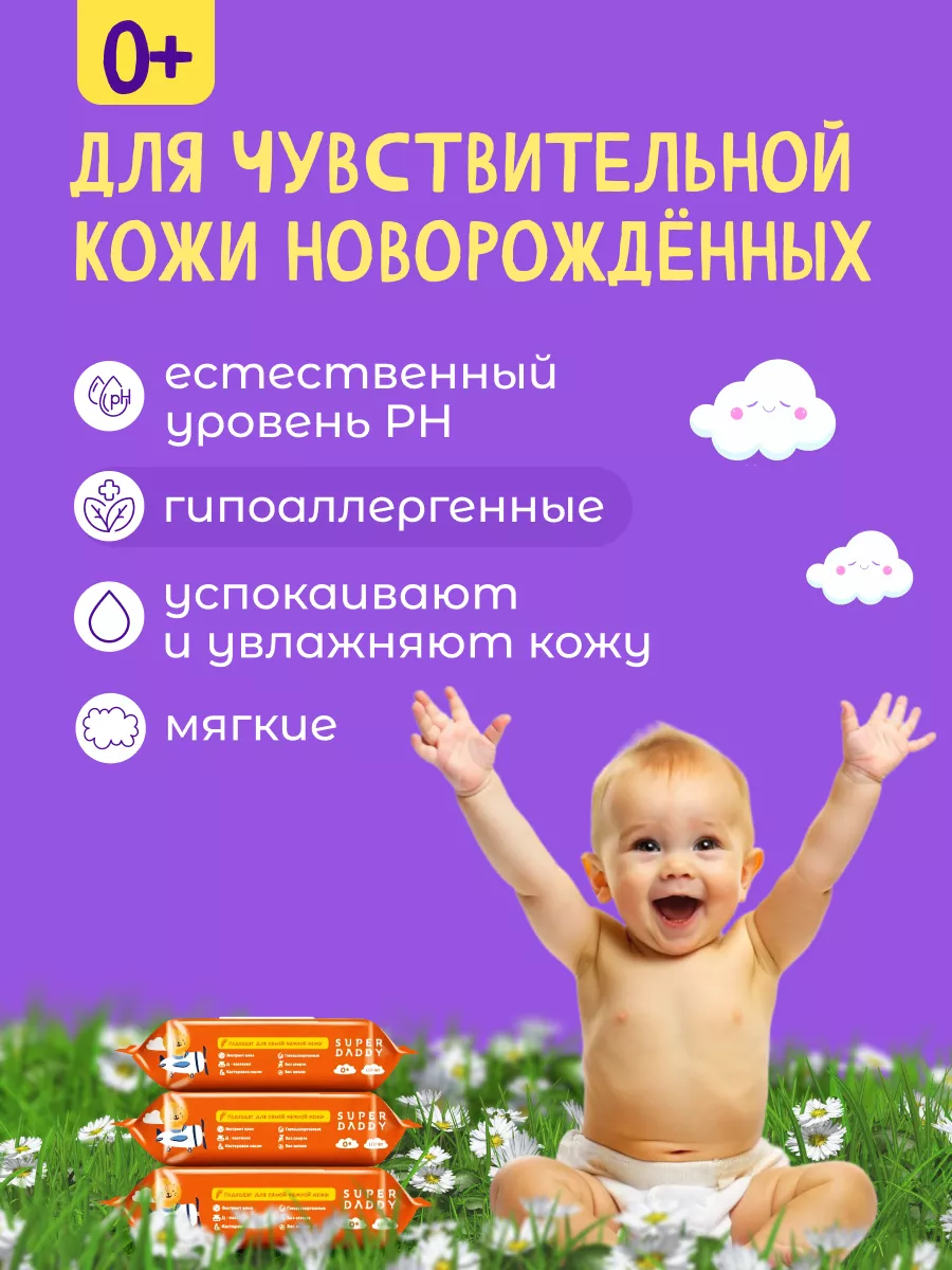 СохранитьСалфетки влажные детские Super Daddy, с Д-Пантенолом и экстрактом алоэ, 600 штук, гипоаллергенные интересное: