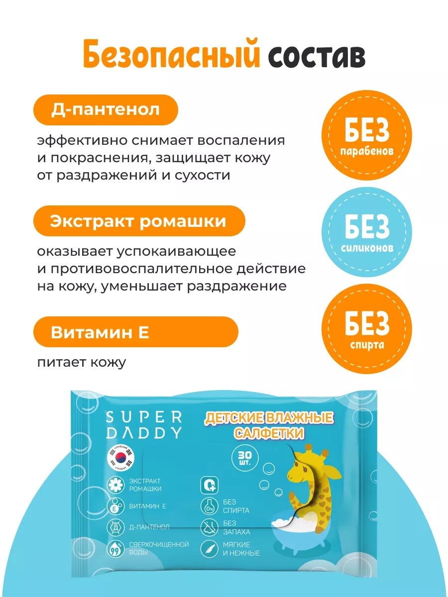 СохранитьВлажные салфетки Super Daddy, для детей, с Д-Пантенолом, Ромашка, 480 шт интересное: