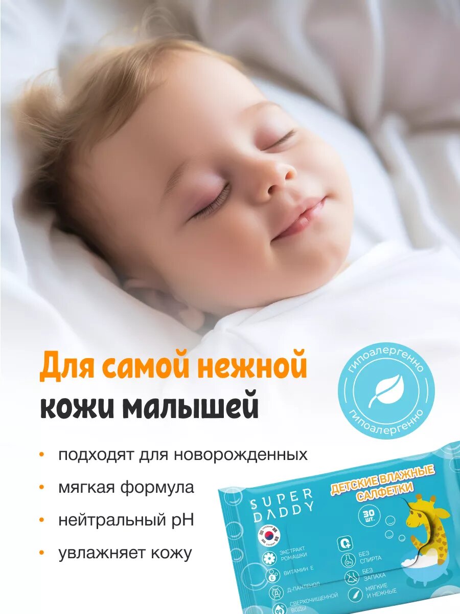 Влажные салфетки детские Super Daddy, с ромашкой и Д-Пантенолом, гипоаллергенные, 600 шт
