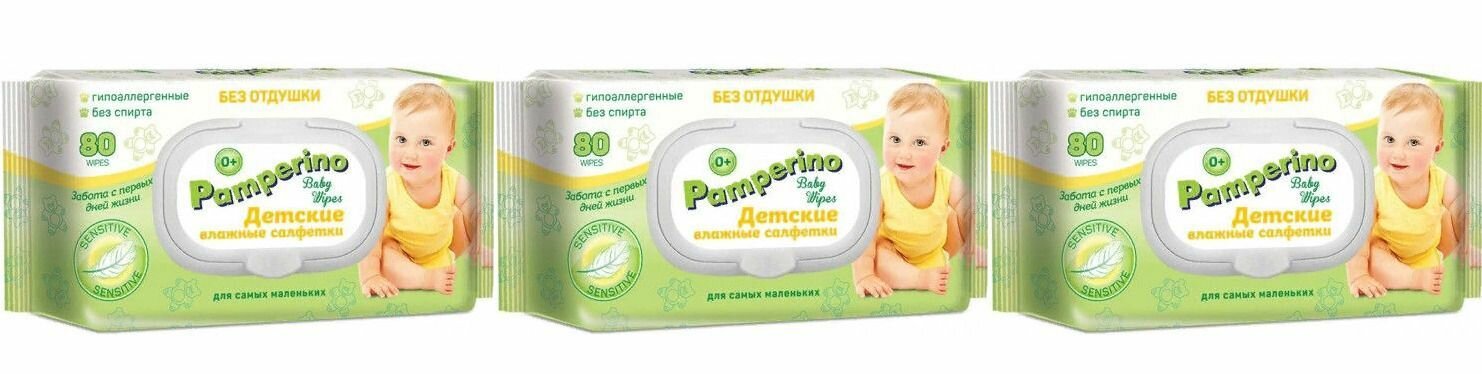 Купить Детские влажные салфетки Pamperino с рождения 0+, без спирта и отдушек, 80 шт (3 упаковки)