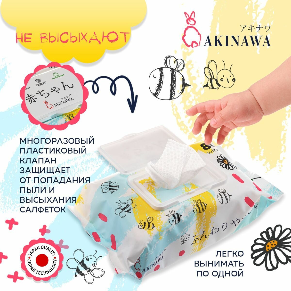 Салфетки влажные AKINAWA, детские, антибактериальные, 80шт, экстракт ромашки интересное: