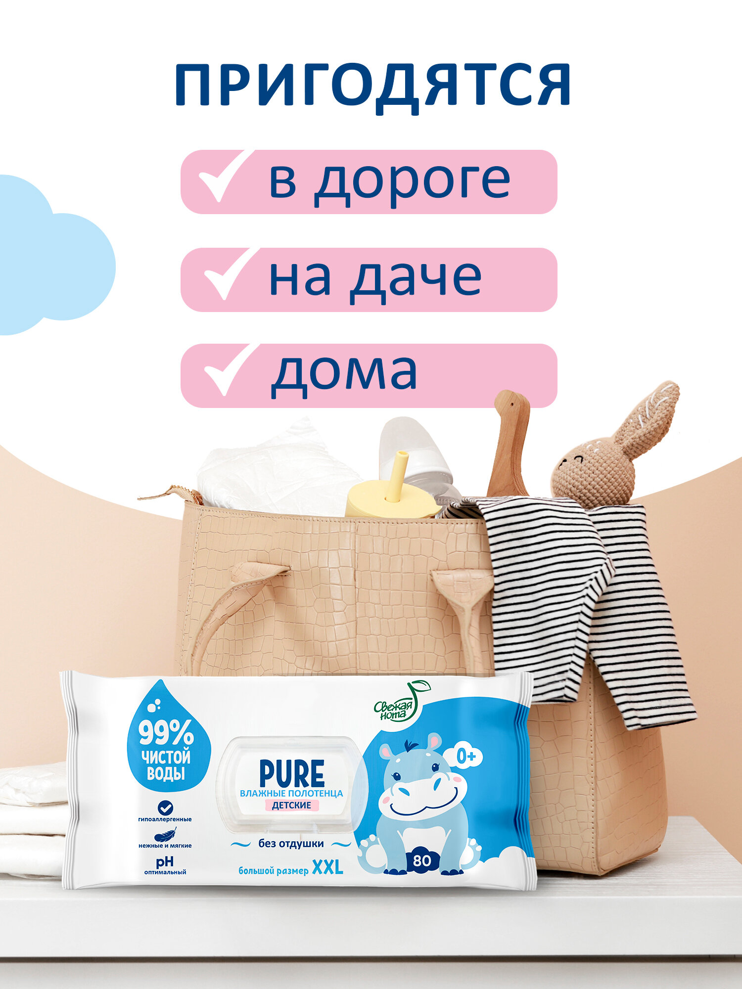 Свежая нота Pure влажные полотенца детские 0+ 320 шт (4 уп по 80шт) интересное: